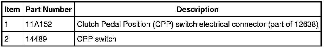 1. Disconnect the Clutch Pedal Position (CPP) switch electrical connector.