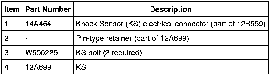 3. NOTICE: Note the position and orientation of each Knock Sensor (KS). The sensors must be installed in the same position as removed or damage to the sensors may occur.