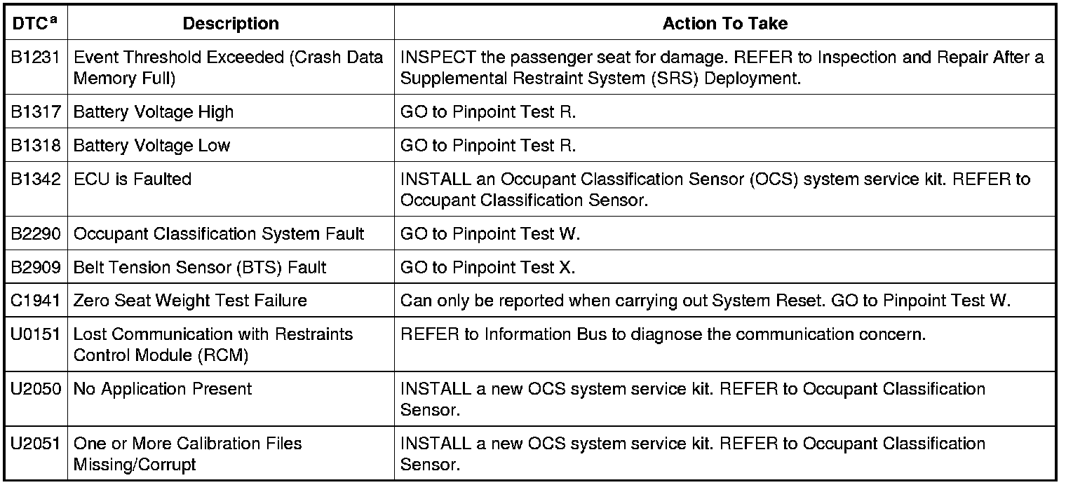 Occupant Classification System Module (OCSM) DTC Chart