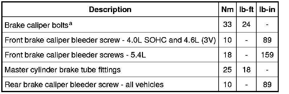 a The bolts retaining the front caliper halves together on 5.4L equipped vehicles are not serviceable.