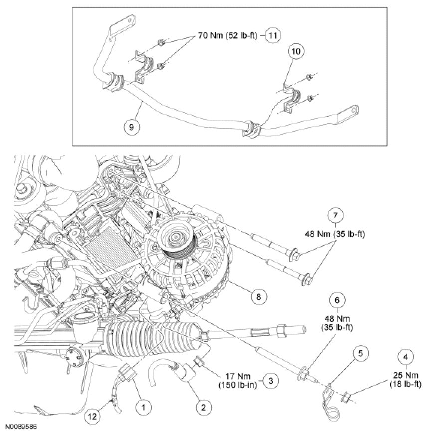 7. Remove and discard the 4 stabilizer bracket nuts, then remove the stabilizer bar brackets and position the sway bar aside.