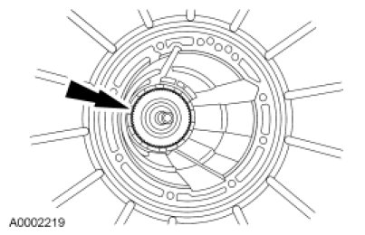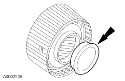33. Install the No. 6B forward clutch thrust washer onto the forward ring gear hub.