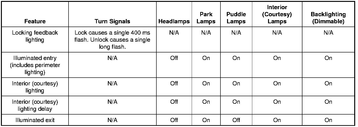 - Turn signals provide a 400 ms flash when the lock button is pressed. When the unlock button is pressed, there is one long flash