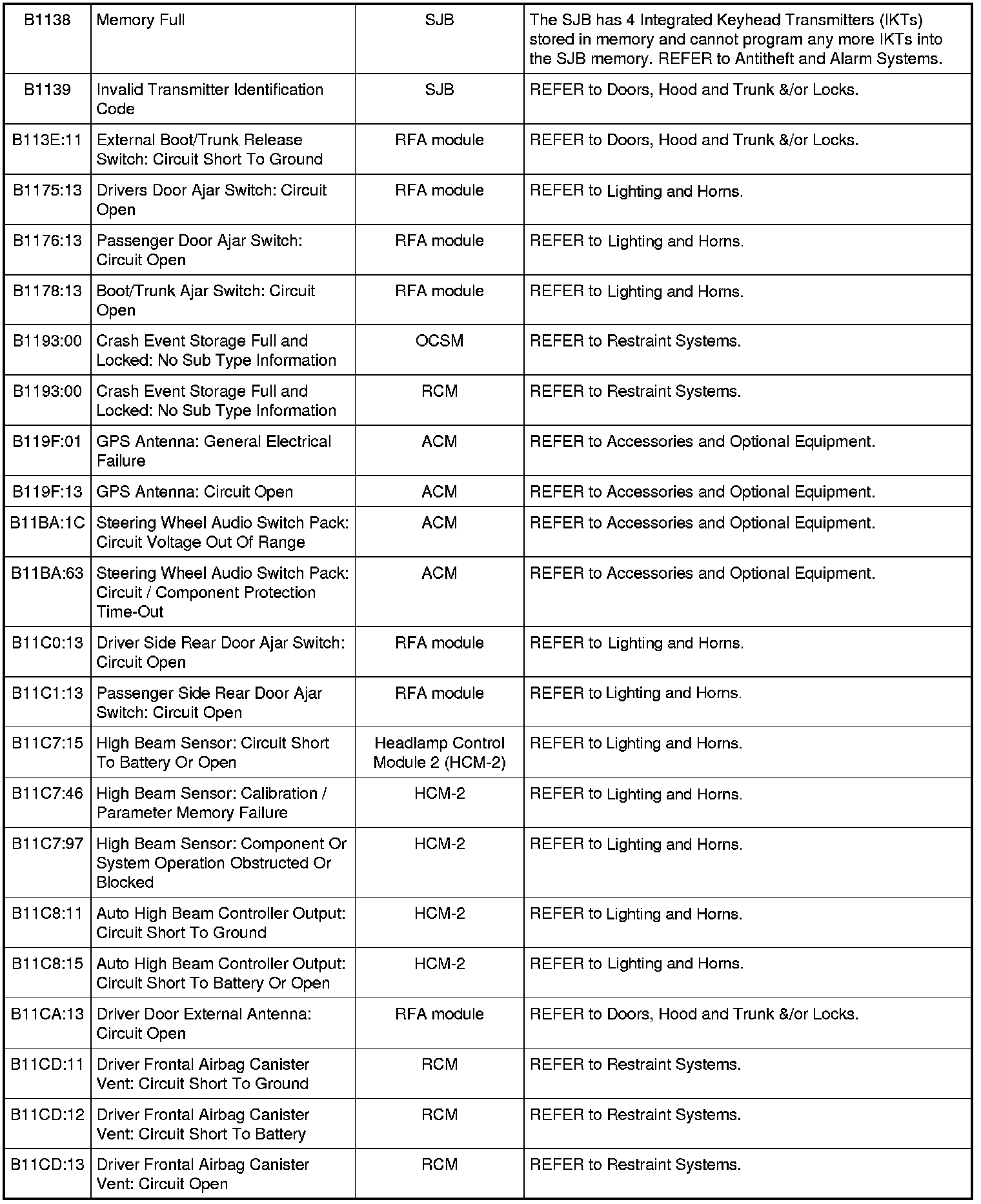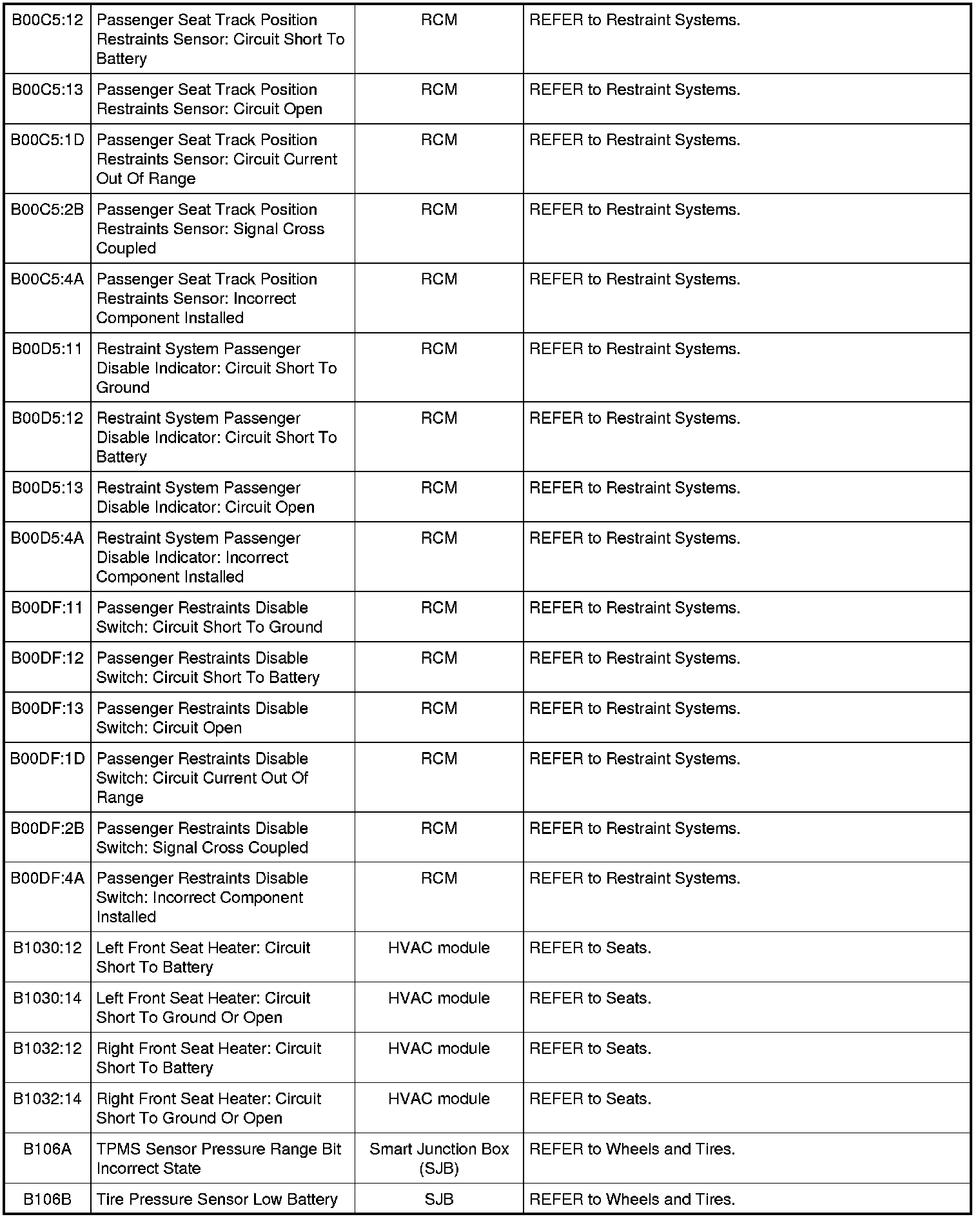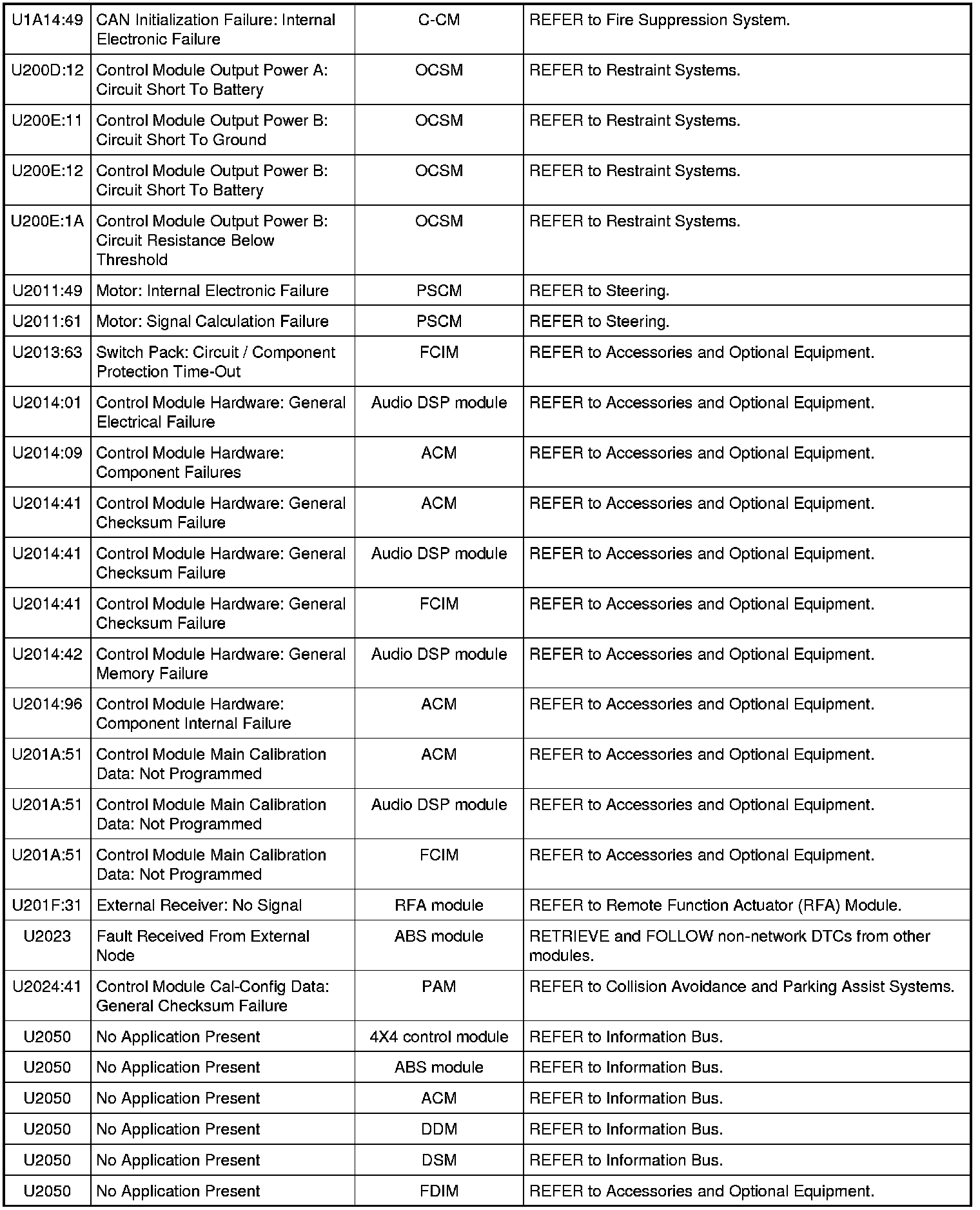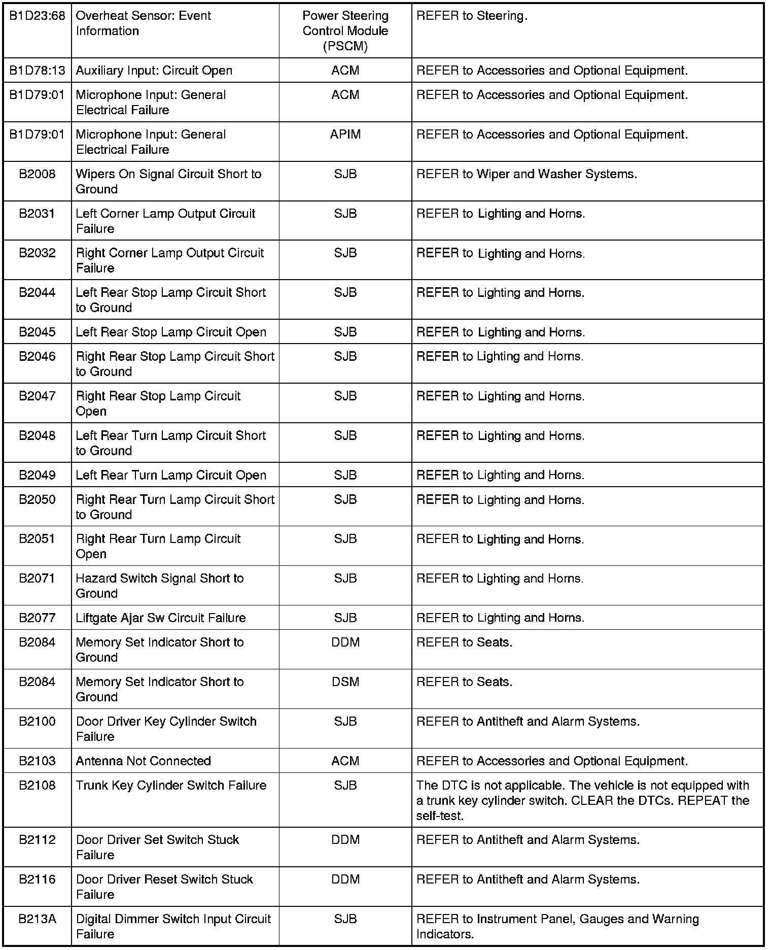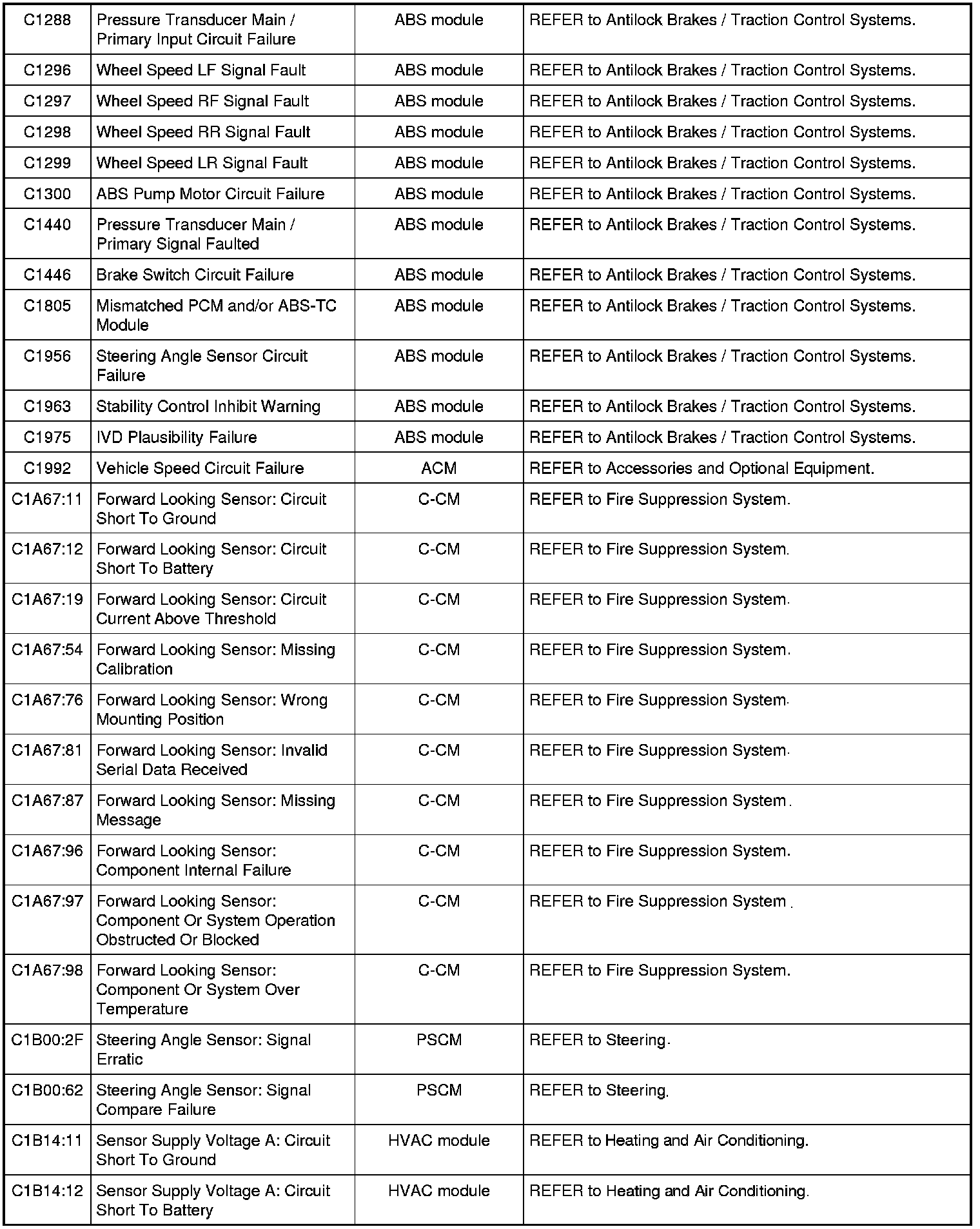 NOTE: Some of these modules utilize a 5-character DTC followed by a 2-character failure-type code. The failure-type code provides information about specific fault conditions such as opens, or shorts to ground. Continuous memory DTCs have an additional 2-character DTC status code suffix to assist in determining DTC history.