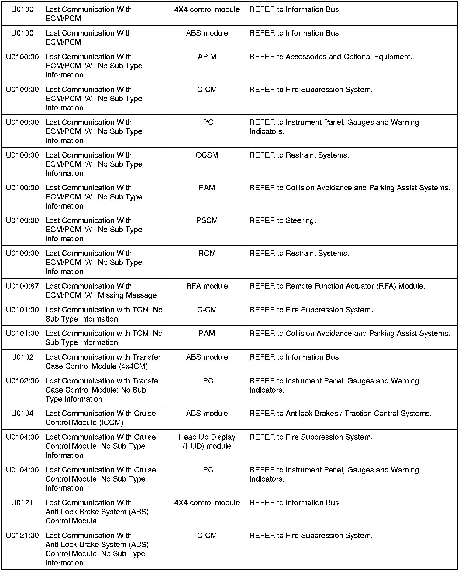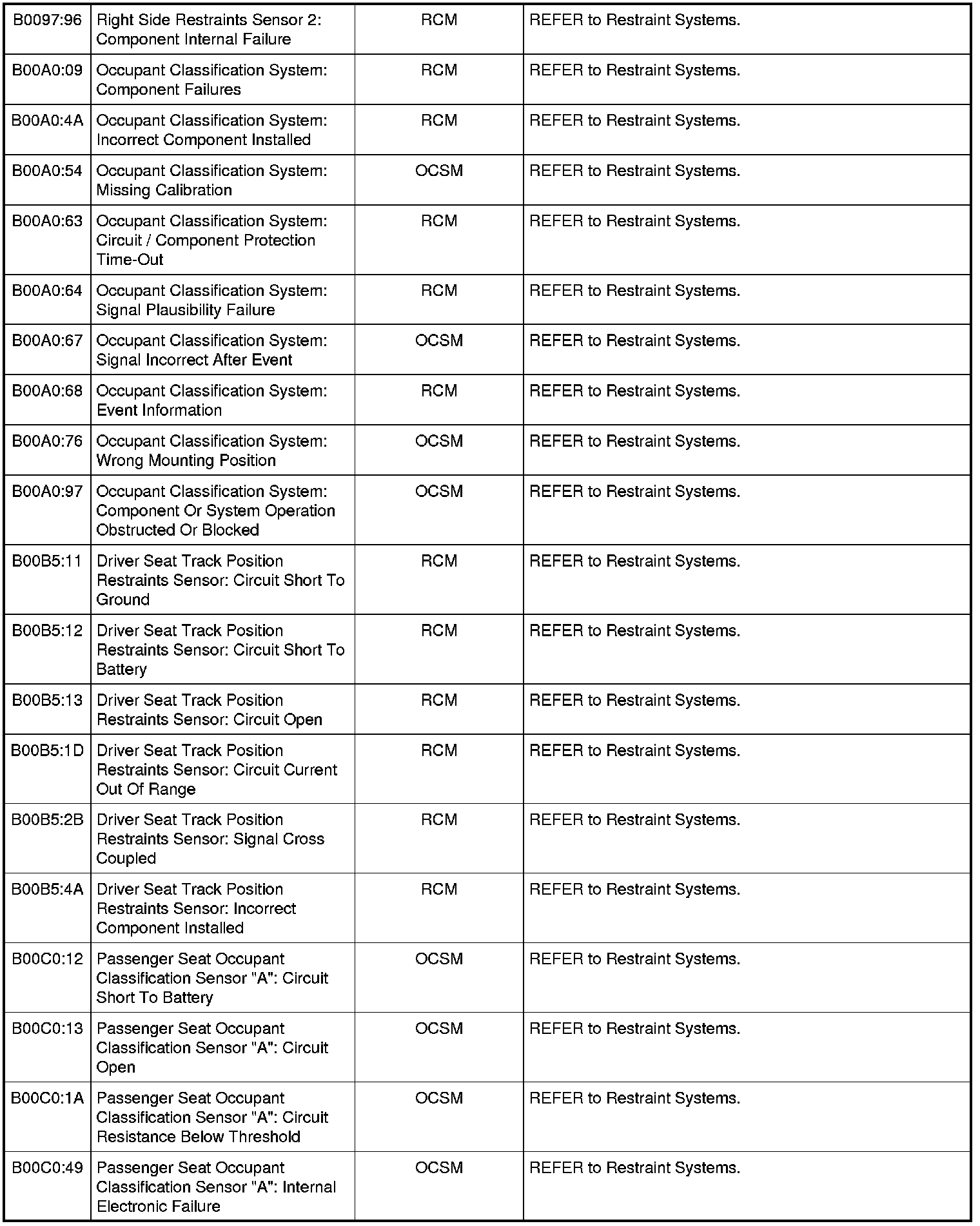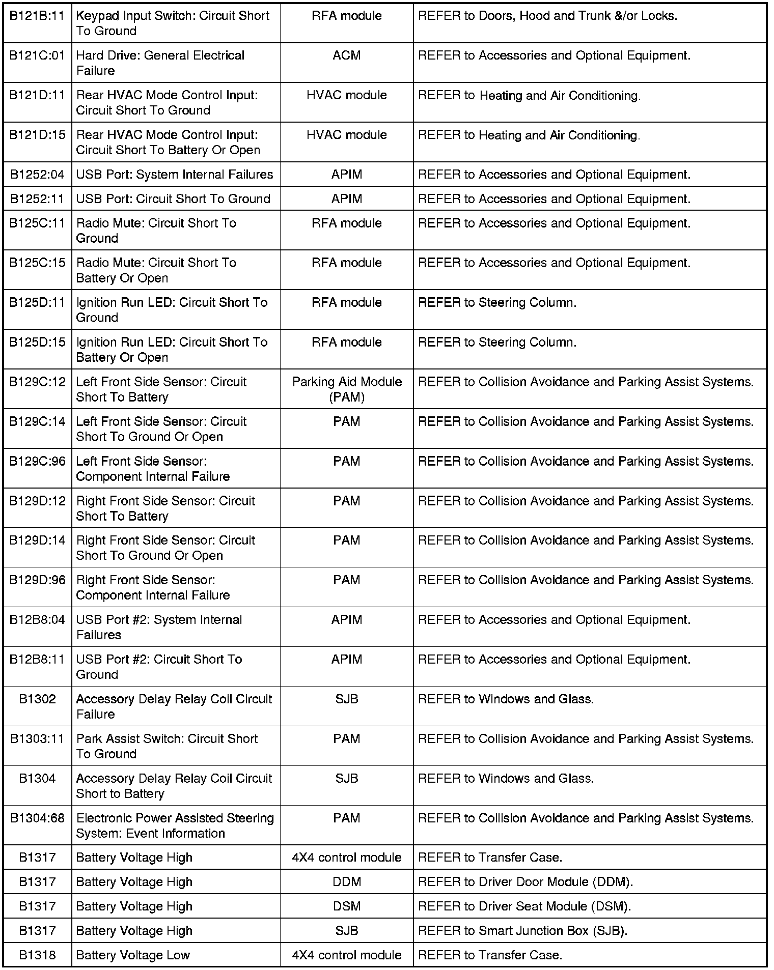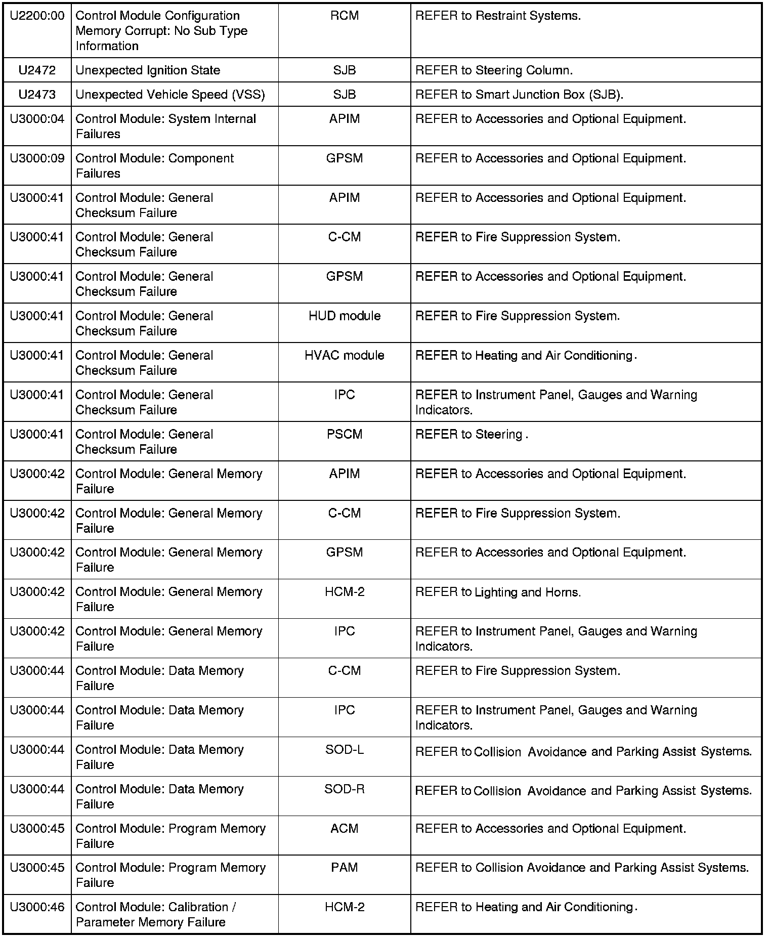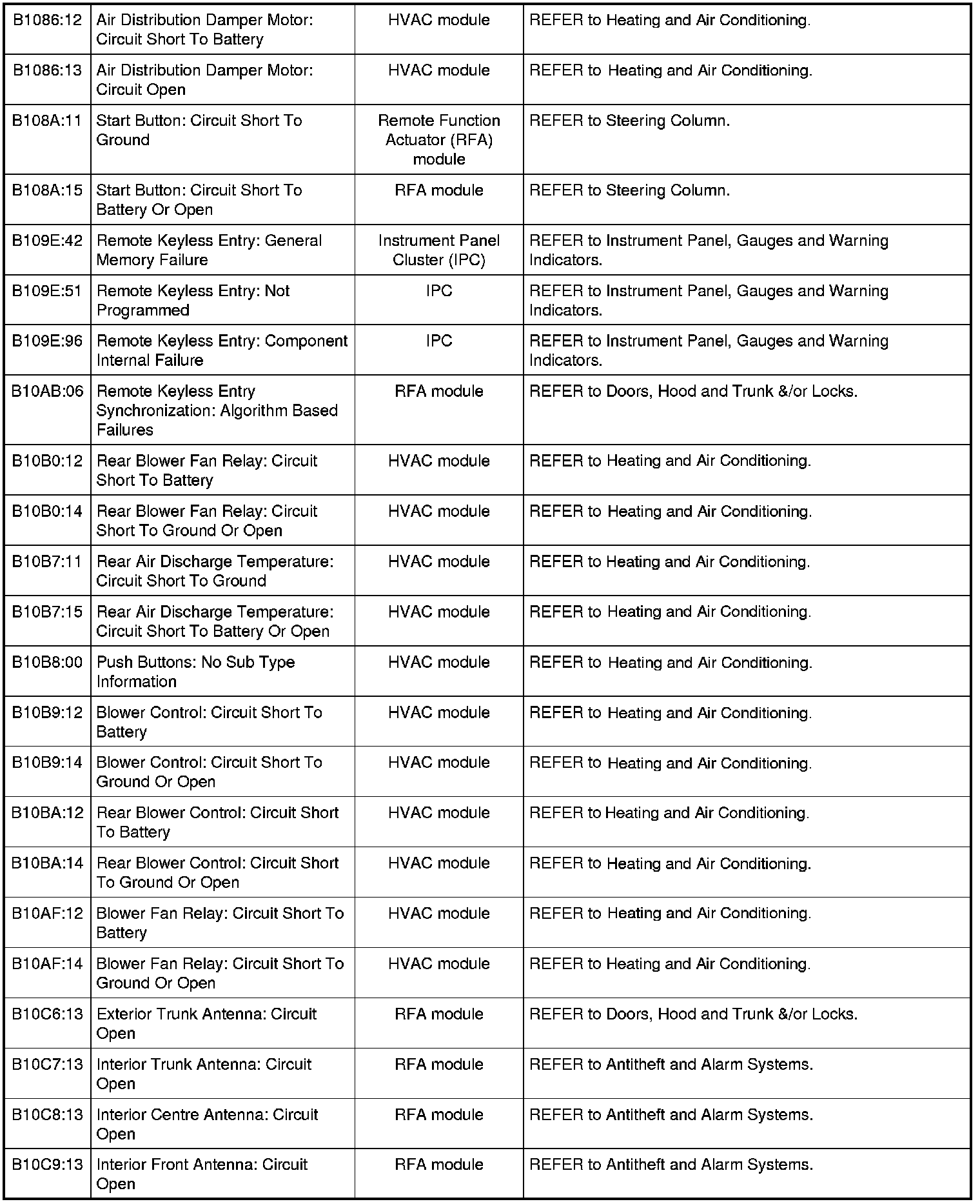 NOTE: Some of these modules utilize a 5-character DTC followed by a 2-character failure-type code. The failure-type code provides information about specific fault conditions such as opens, or shorts to ground. Continuous memory DTCs have an additional 2-character DTC status code suffix to assist in determining DTC history.