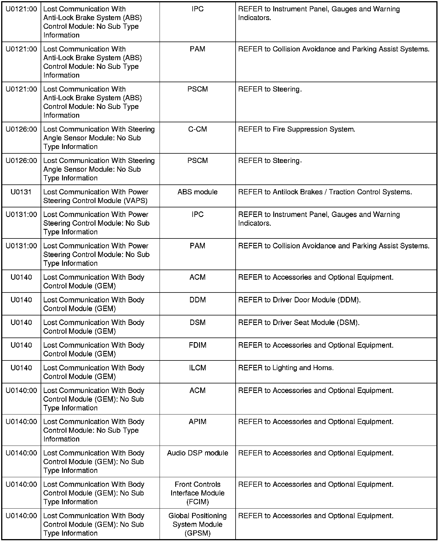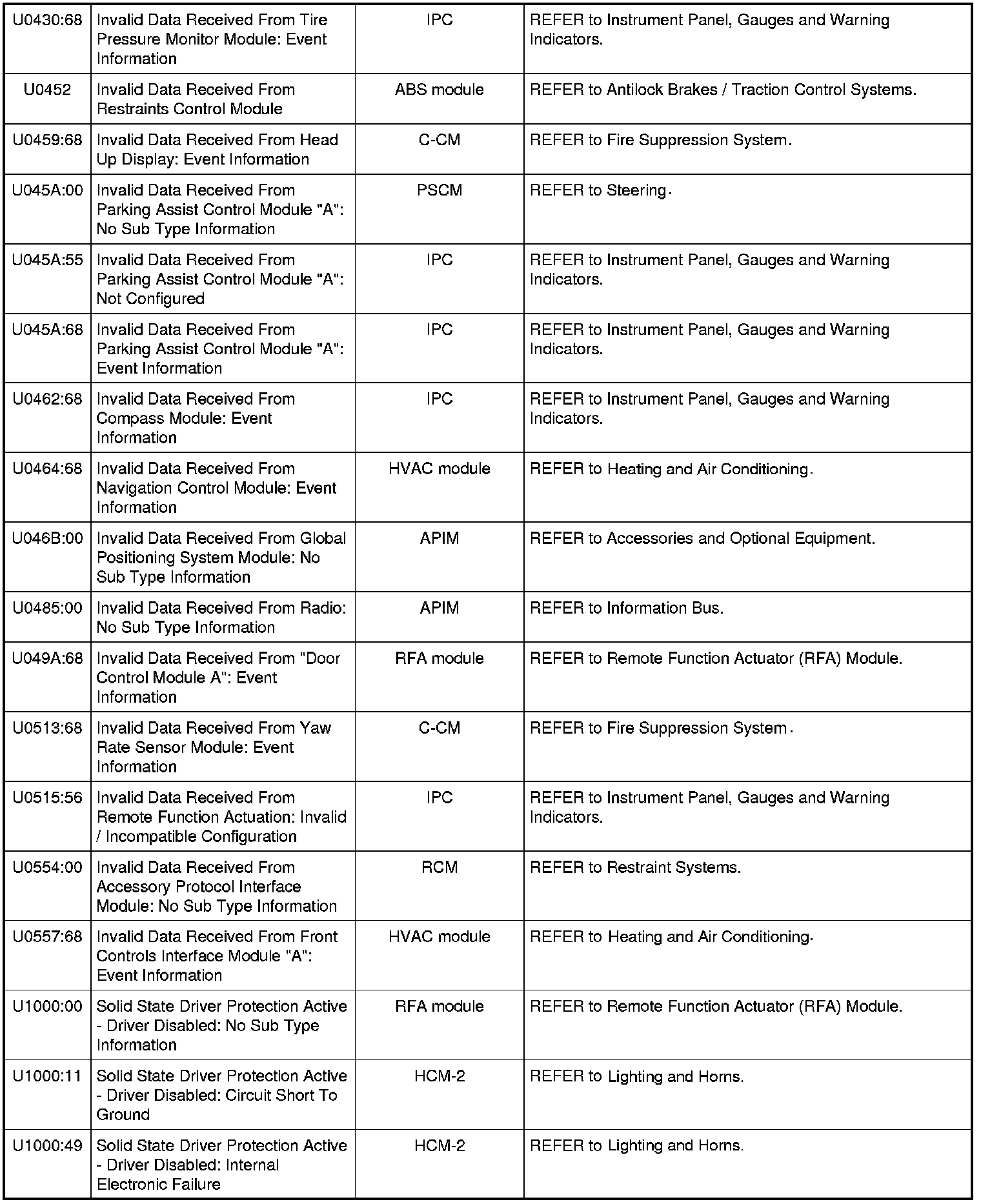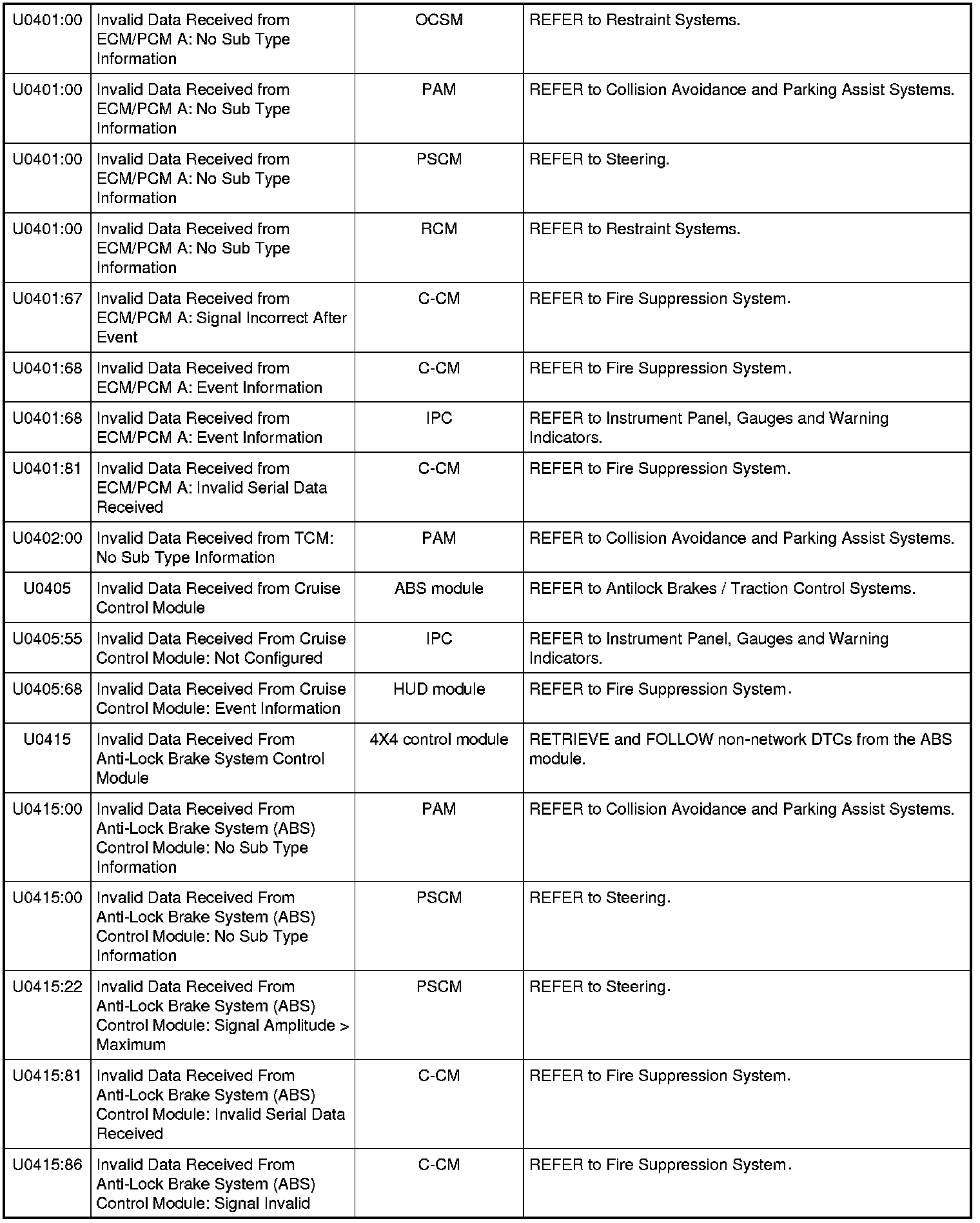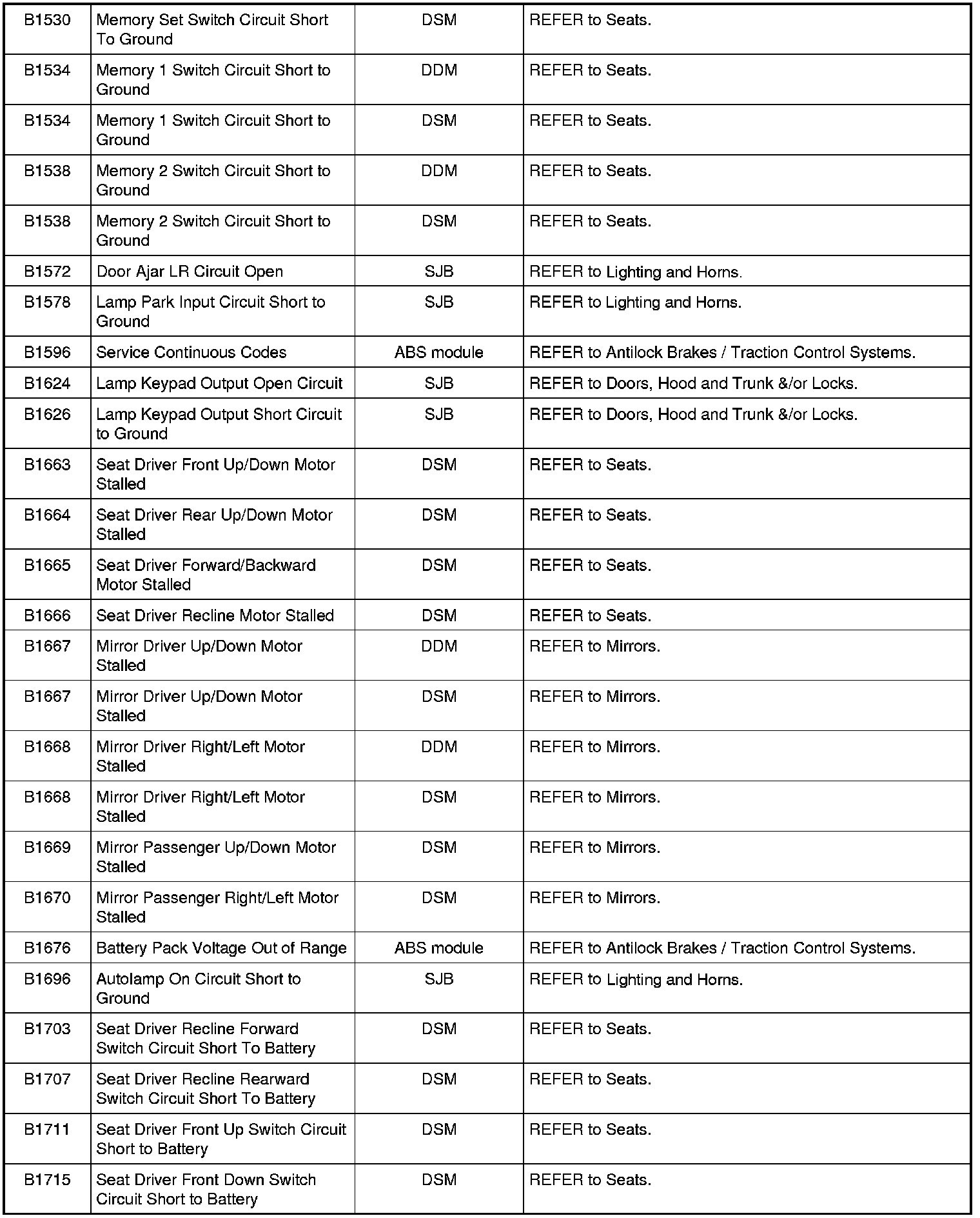 NOTE: Some of these modules utilize a 5-character DTC followed by a 2-character failure-type code. The failure-type code provides information about specific fault conditions such as opens, or shorts to ground. Continuous memory DTCs have an additional 2-character DTC status code suffix to assist in determining DTC history.