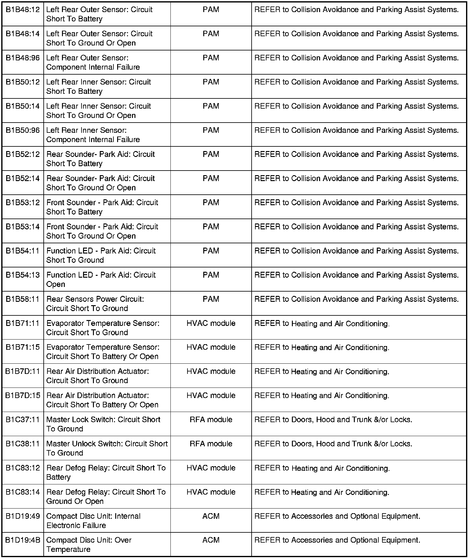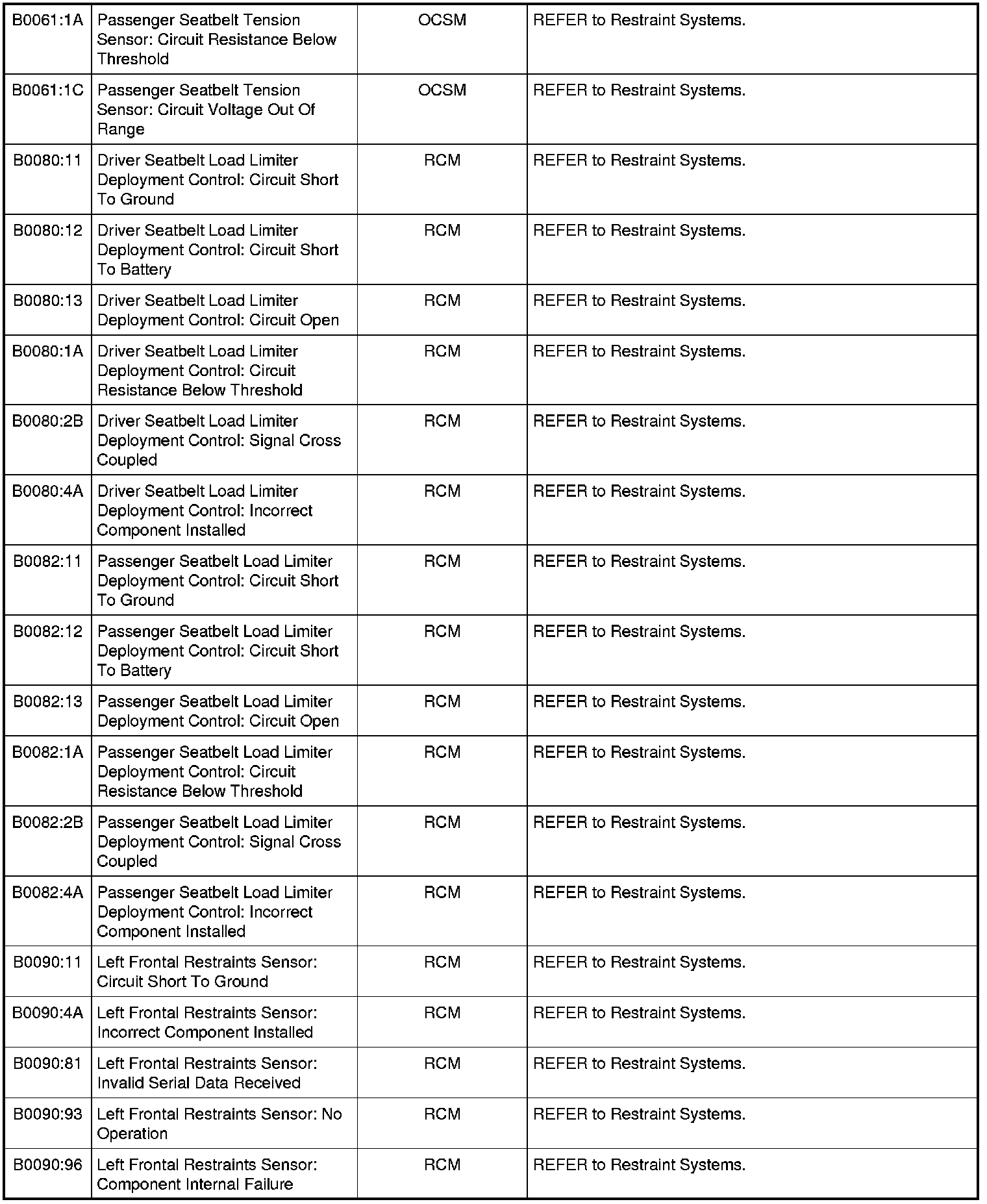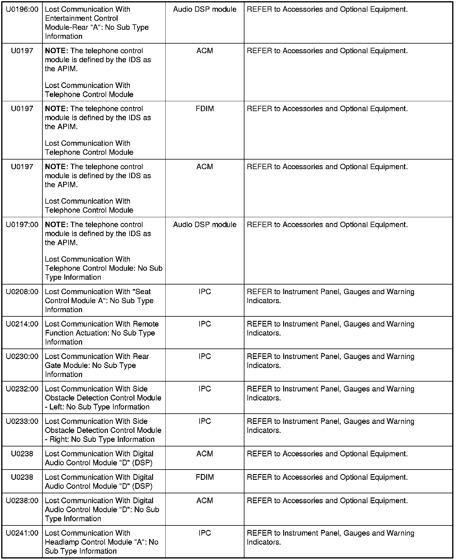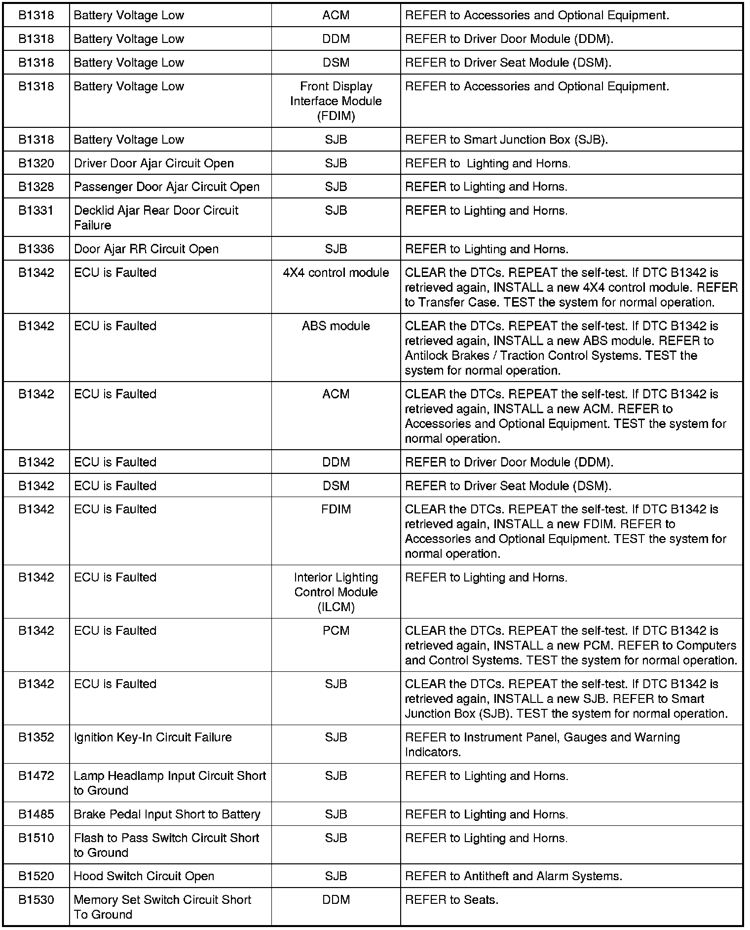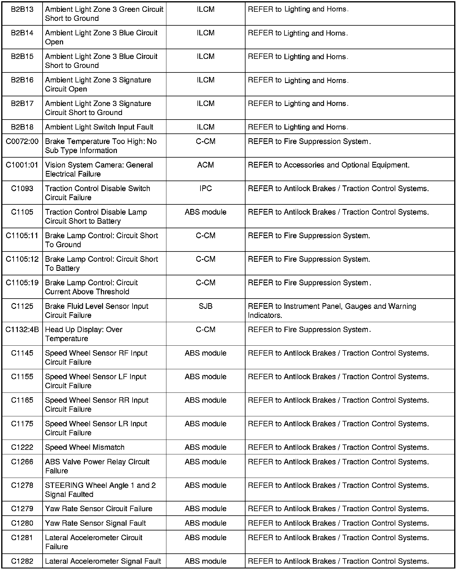 NOTE: Some of these modules utilize a 5-character DTC followed by a 2-character failure-type code. The failure-type code provides information about specific fault conditions such as opens, or shorts to ground. Continuous memory DTCs have an additional 2-character DTC status code suffix to assist in determining DTC history.