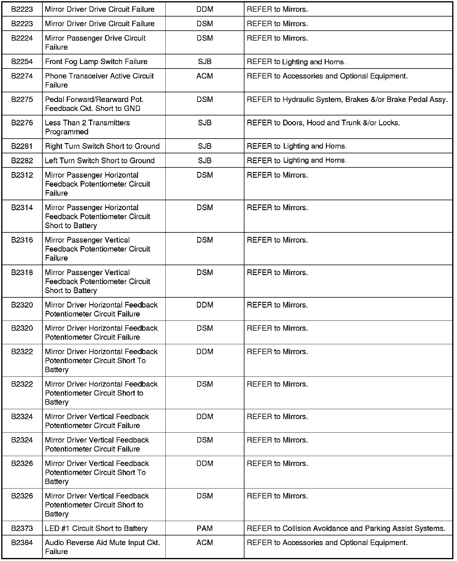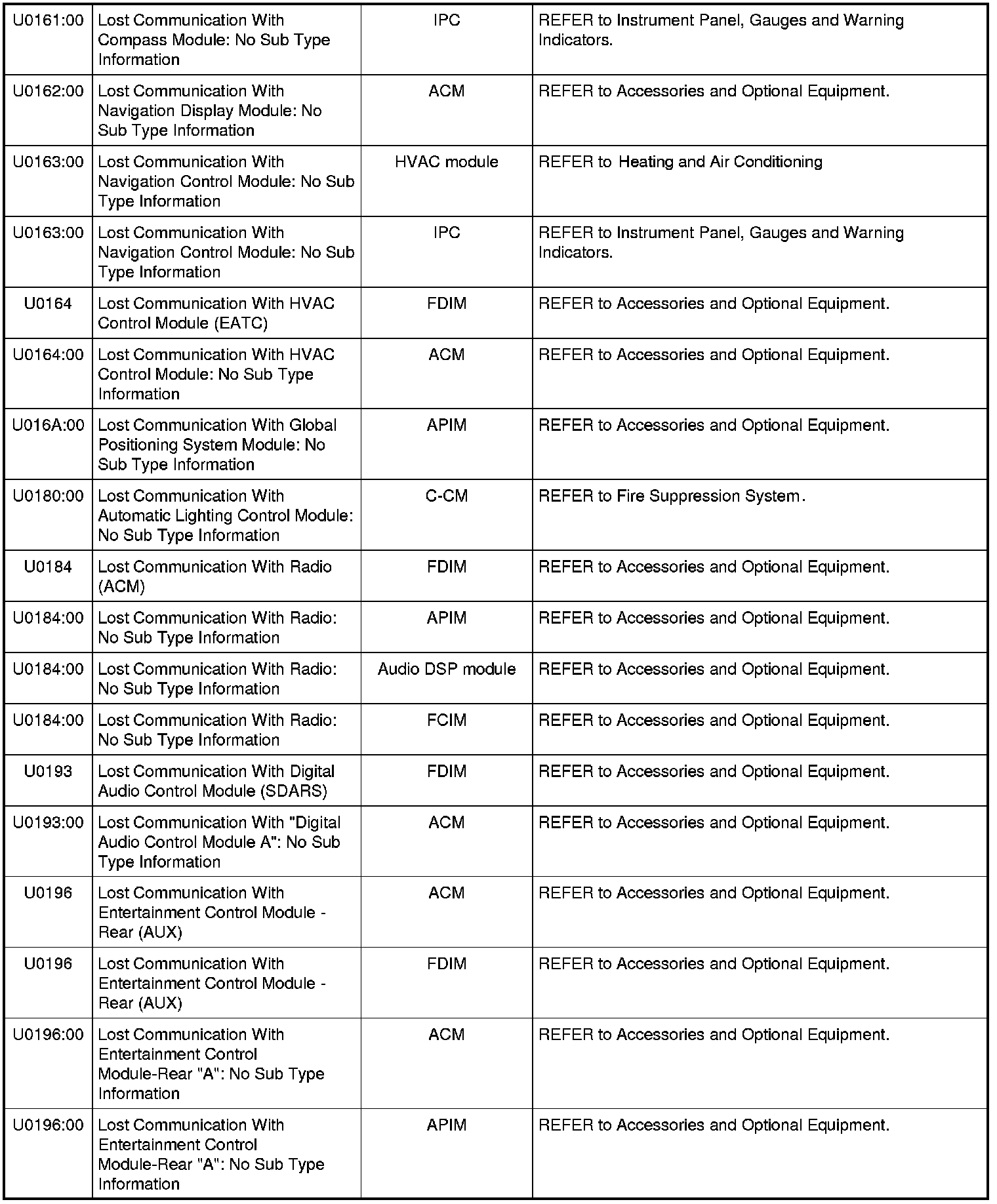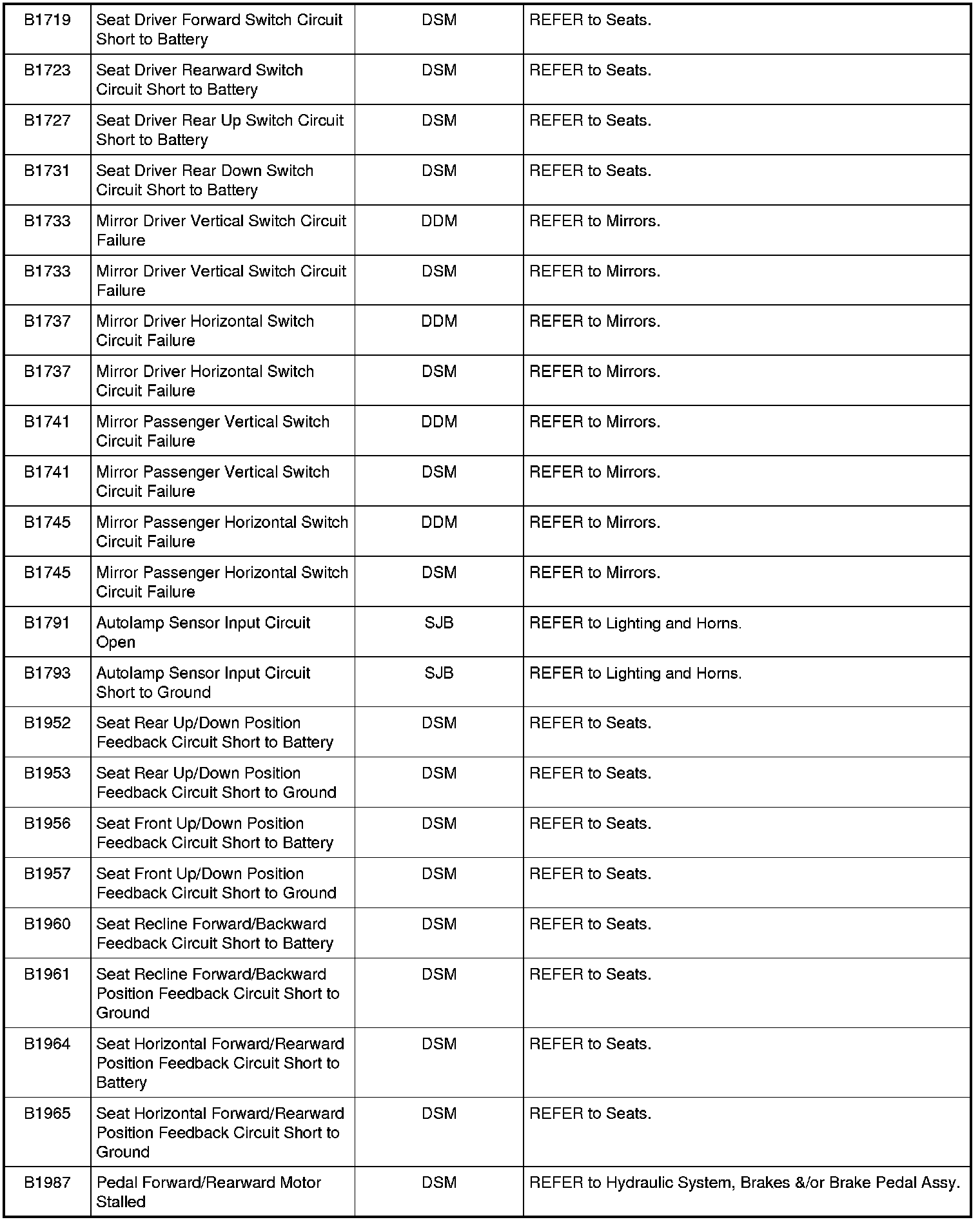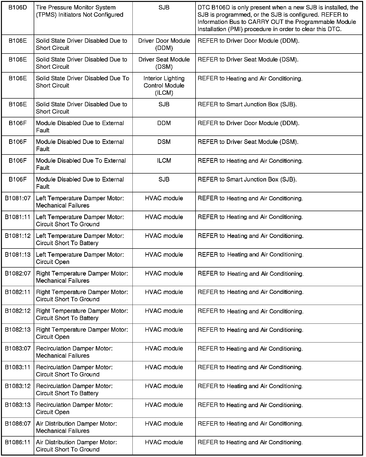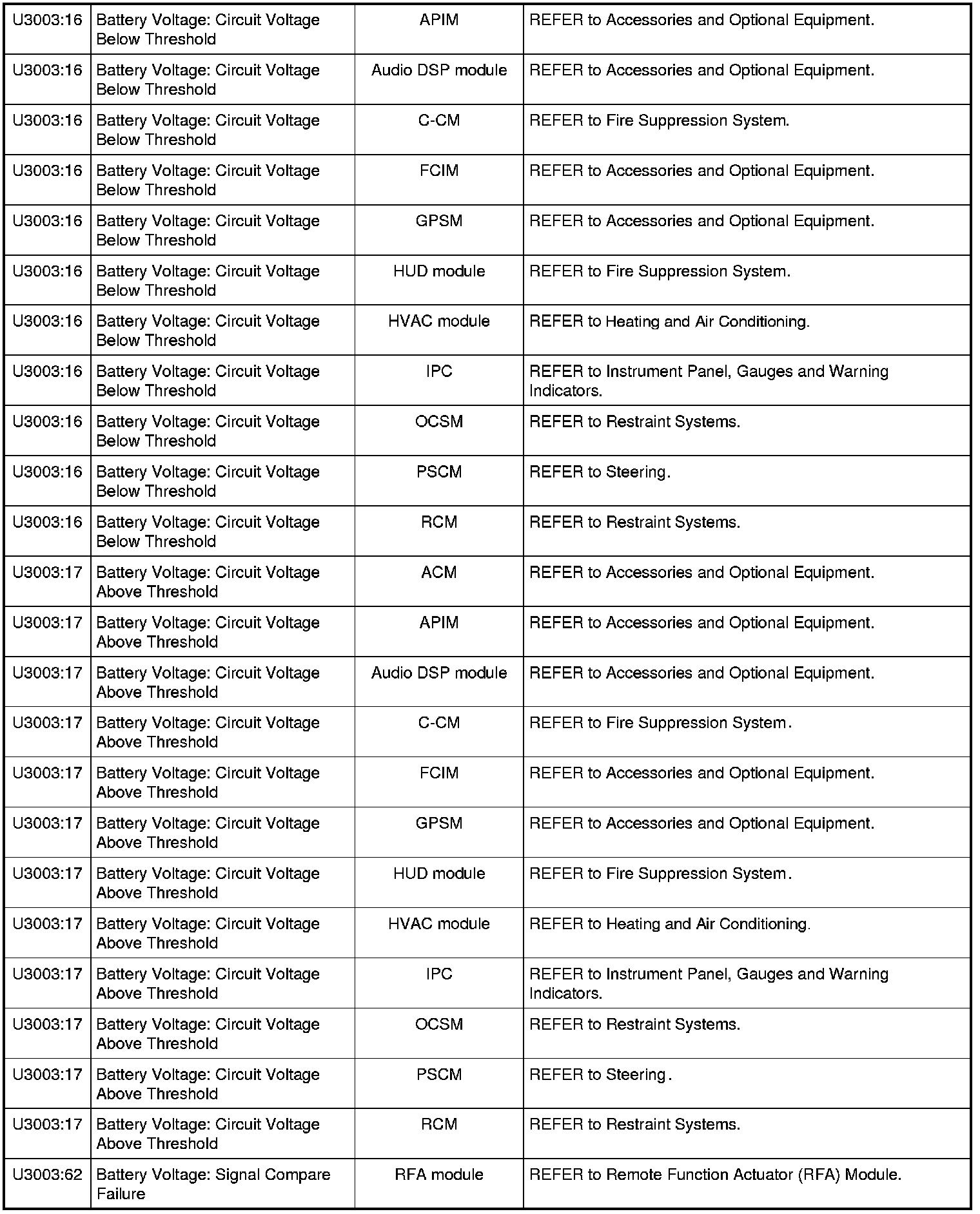 NOTE: Some of these modules utilize a 5-character DTC followed by a 2-character failure-type code. The failure-type code provides information about specific fault conditions such as opens, or shorts to ground. Continuous memory DTCs have an additional 2-character DTC status code suffix to assist in determining DTC history.