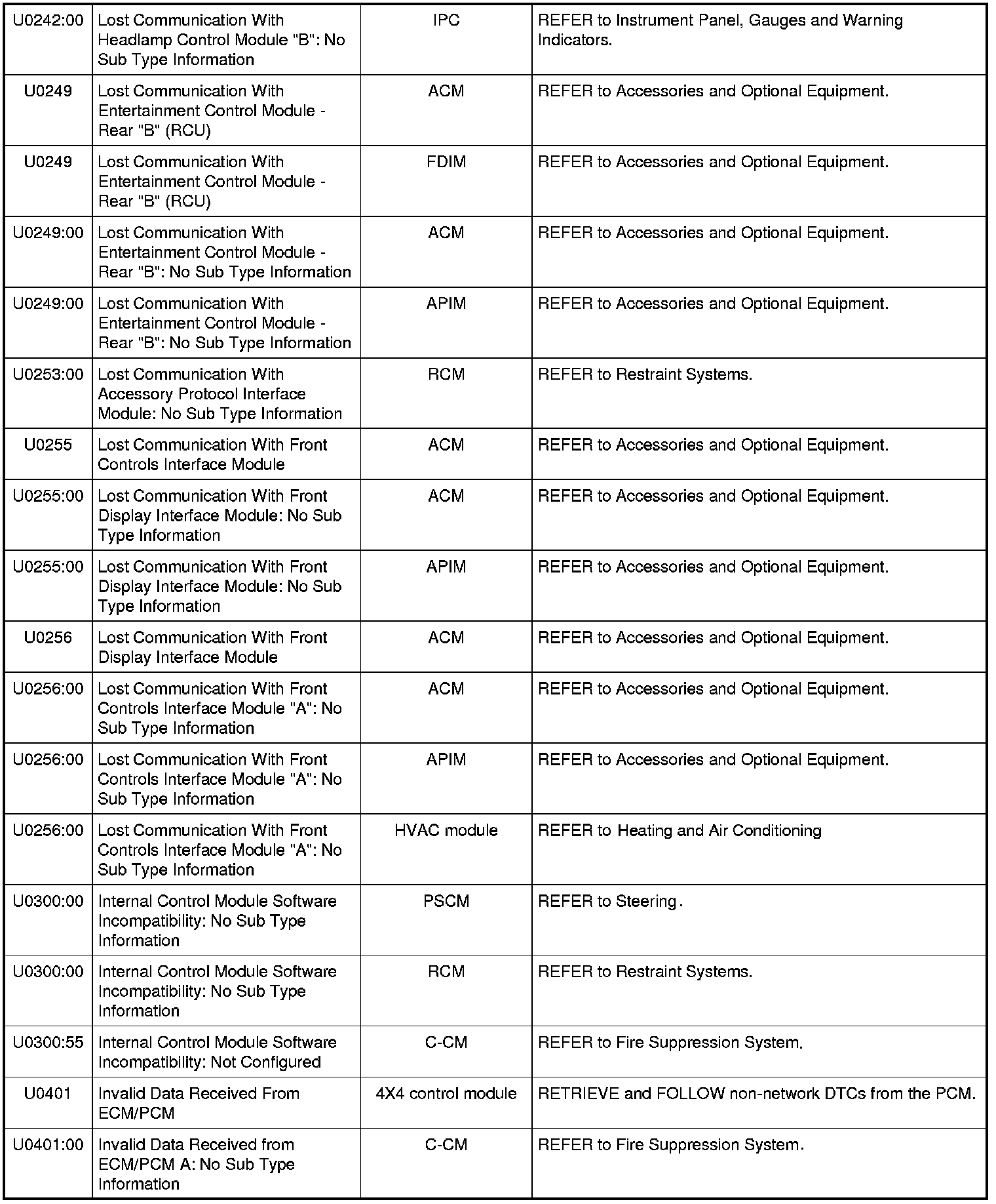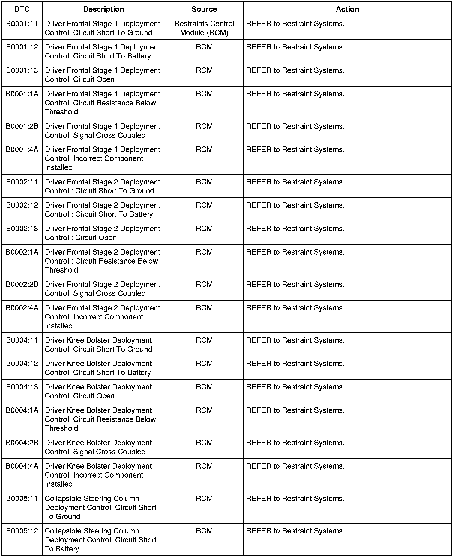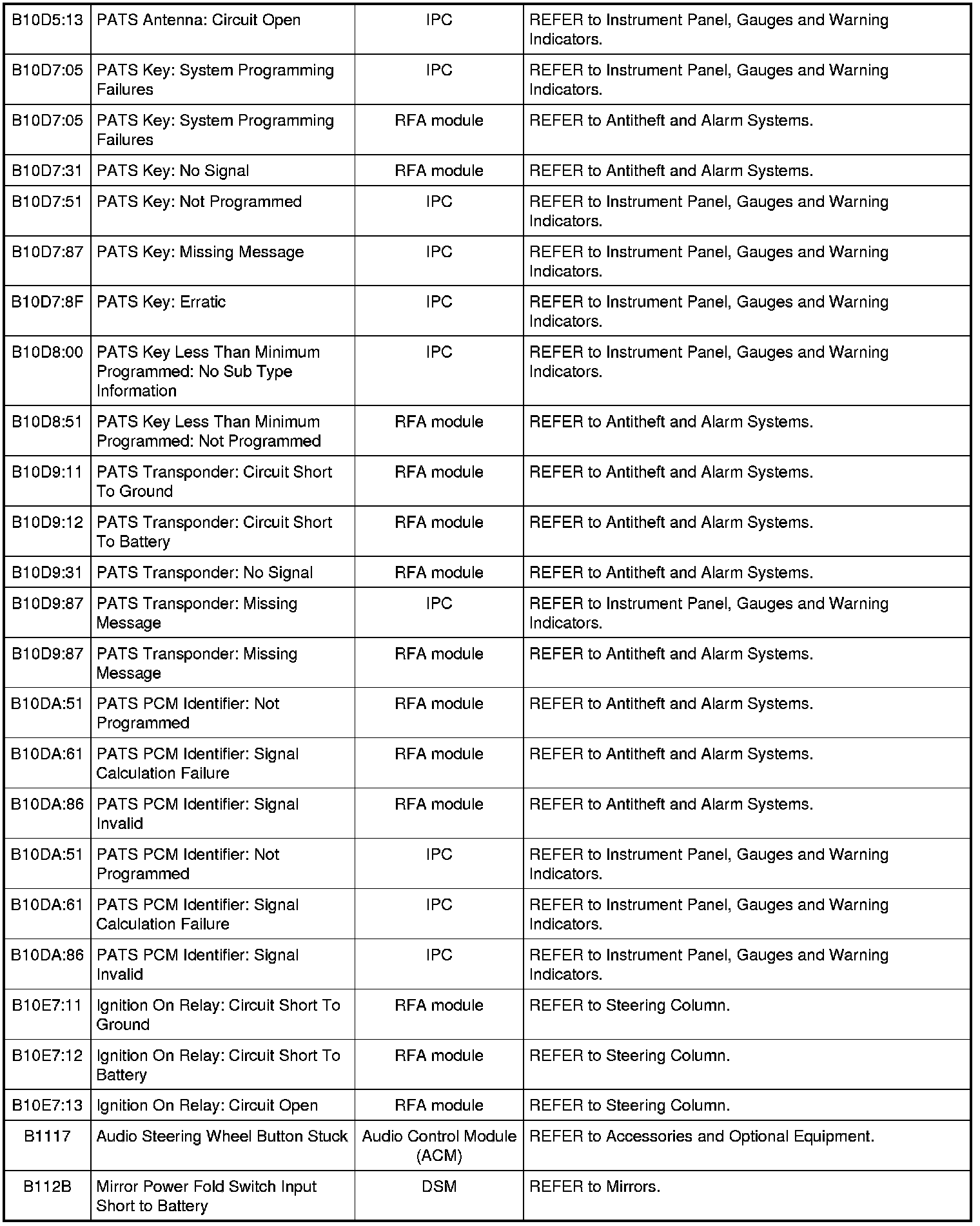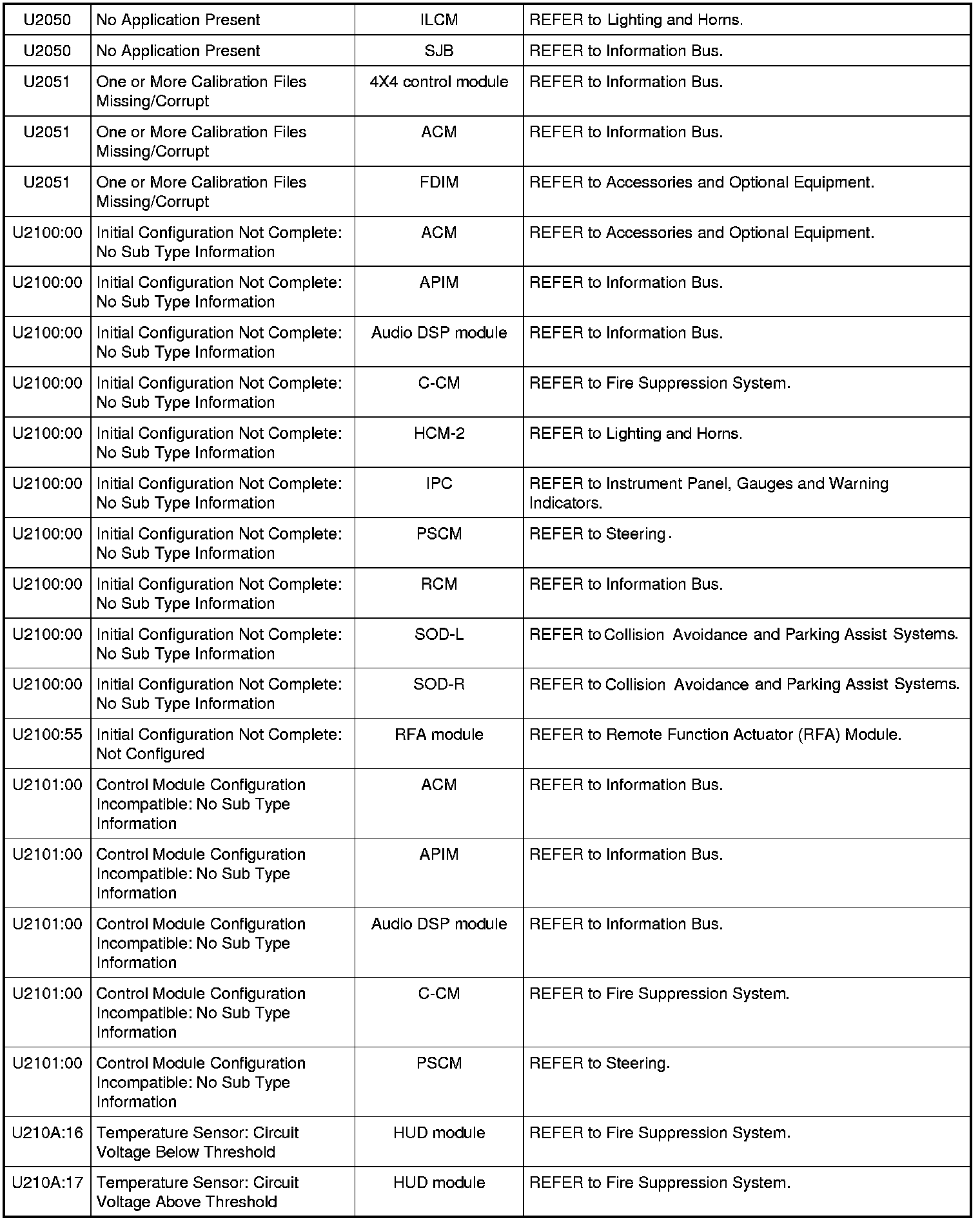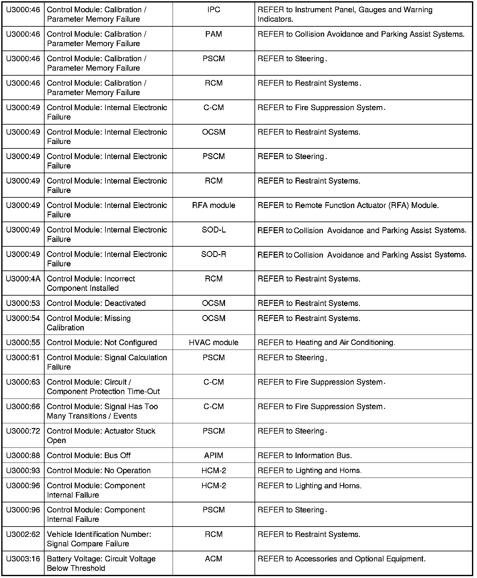 NOTE: Most powertrain (P-code) DTCs are diagnosed in Computers and Control Systems Information. If the P-code retrieved is not listed below, refer to Computers and Control Systems Information to continue diagnostics.