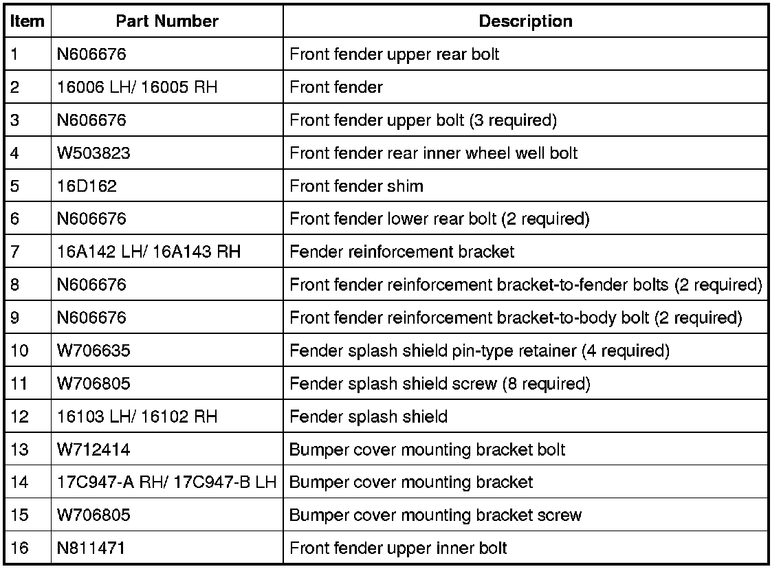 Front End Body Panels - Exploded View