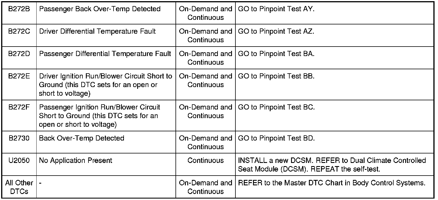 Dual Climate Controlled Seat Module (DCSM) DTC Chart