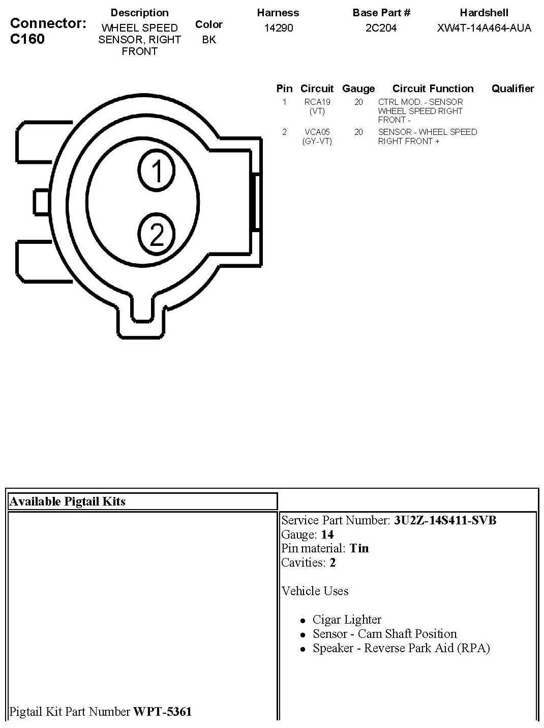 Wheel Speed Sensor, Right Front