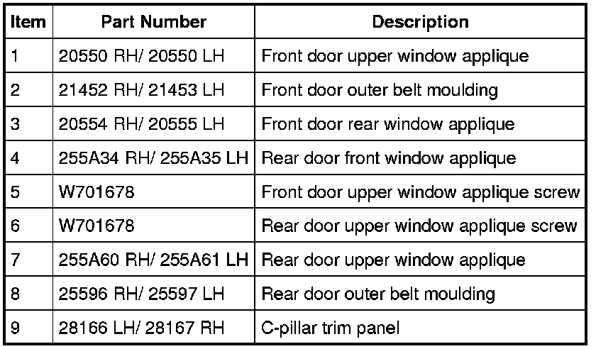 Exterior Trim - Exploded View