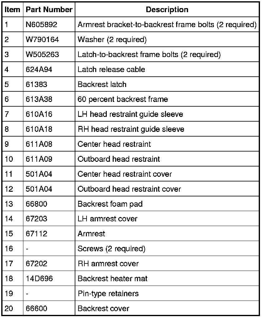 Seat - Exploded View, Second Row
