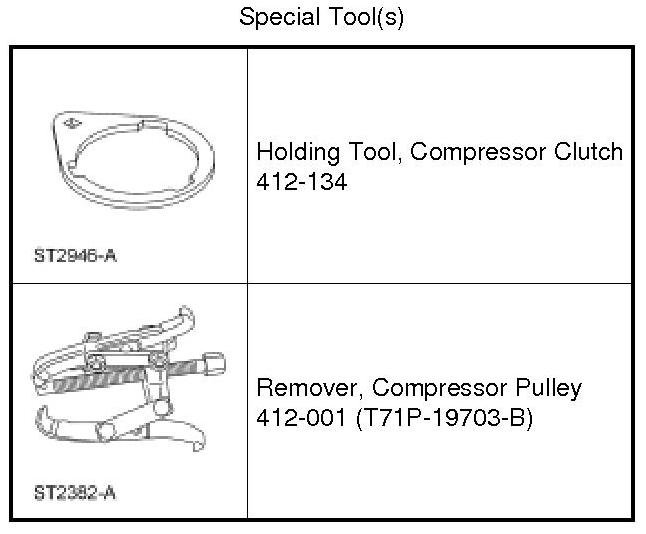 1. Remove the A/C compressor. For additional information, refer to Air Conditioning (A/C) Compressor Service and Repair.