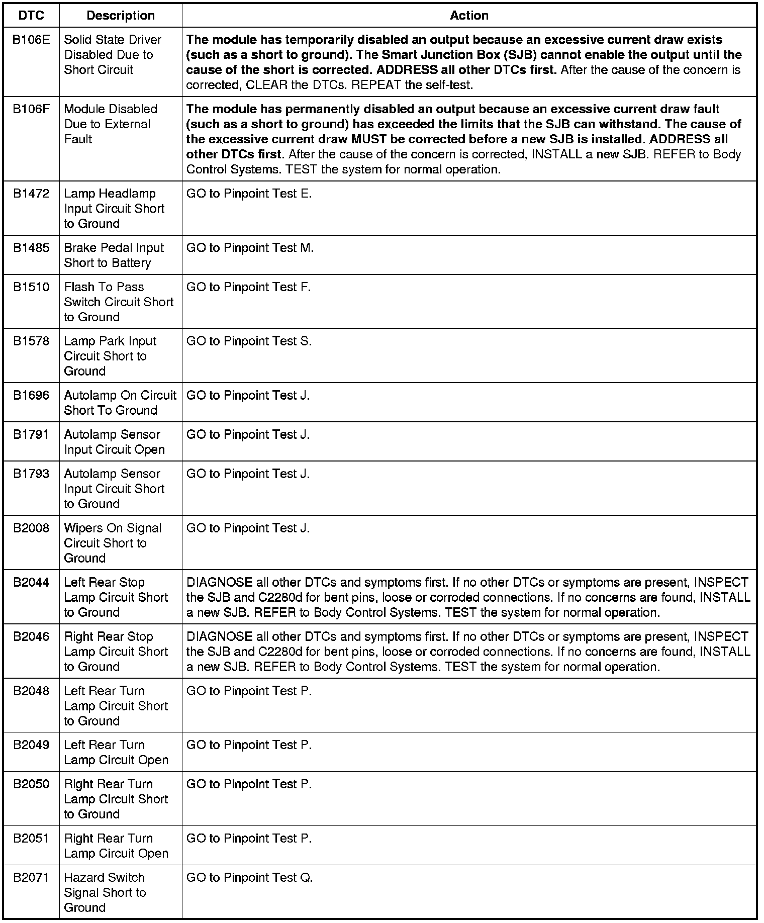 NOTE: This module utilizes a 5-character DTC followed by a 2-character failure-type code. The failure-type code provides information about specific fault conditions such as opens, or shorts to ground. Continuous memory DTCs have an additional 2-character DTC status code suffix to assist in determining DTC history.