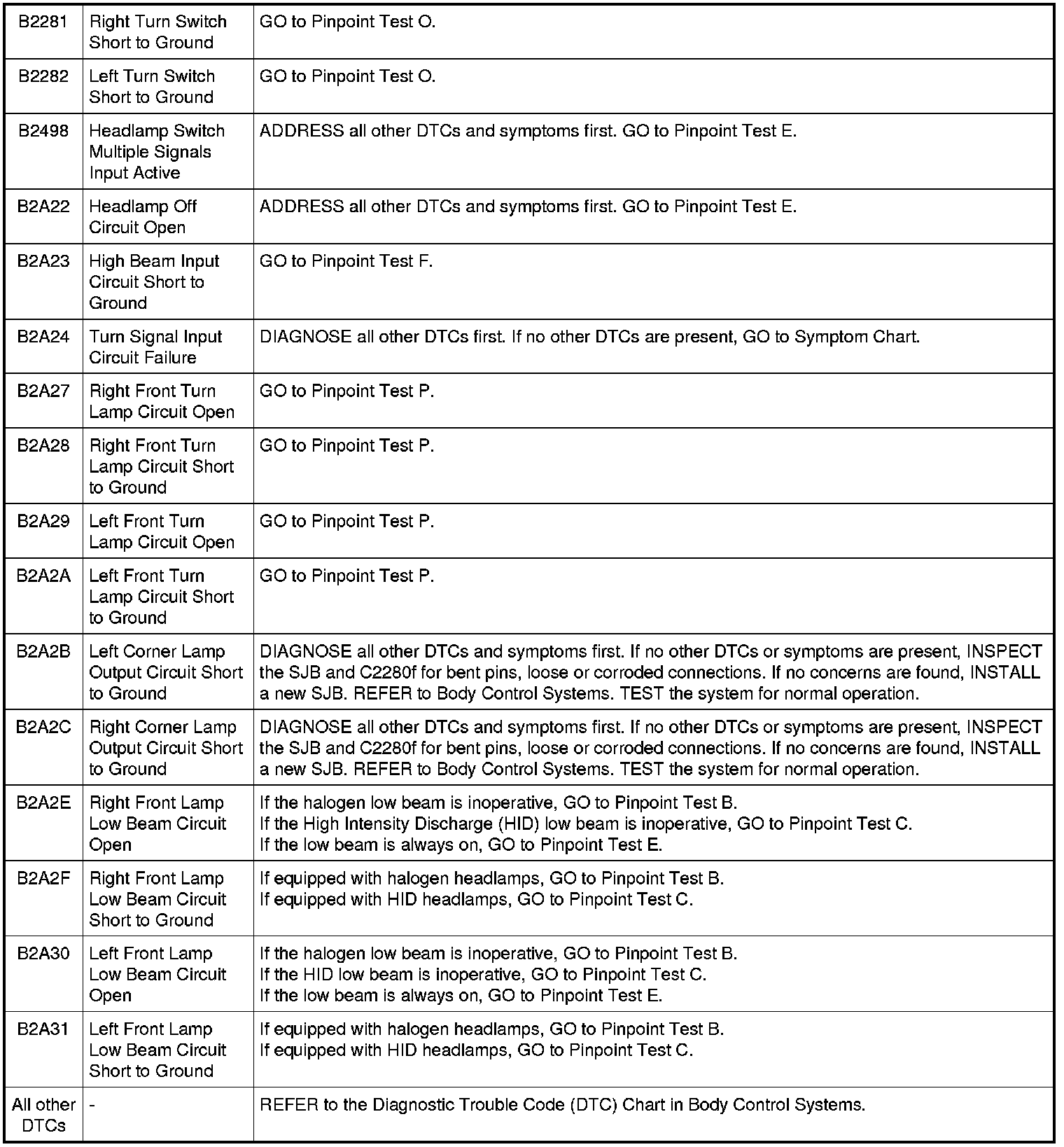 Headlamp Control Module 2 (HCM-2) DTC Chart