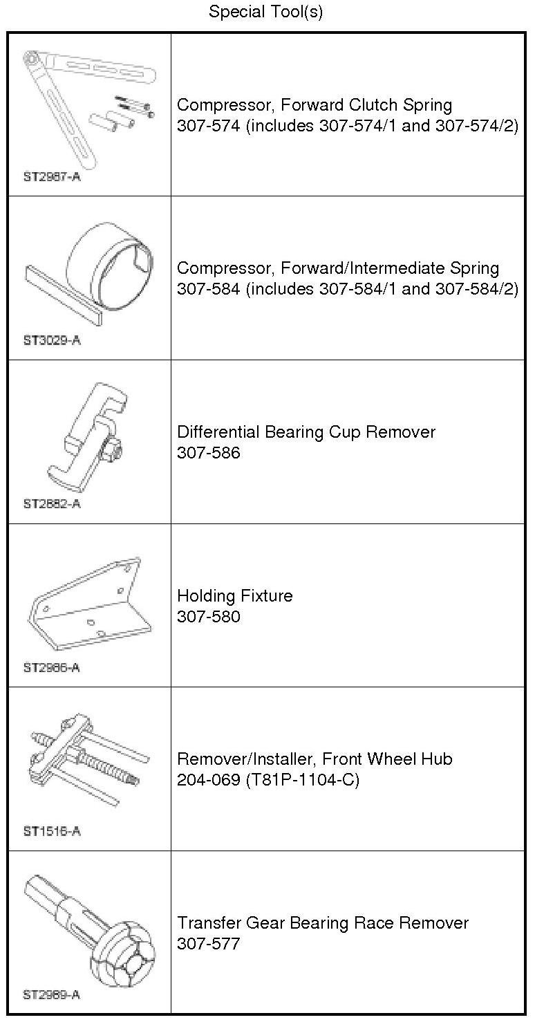 53. If the transaxle case side transfer shaft bearing cup is damaged, install Transfer Gear Bearing Race Remover 307-577 on the bearing cup.