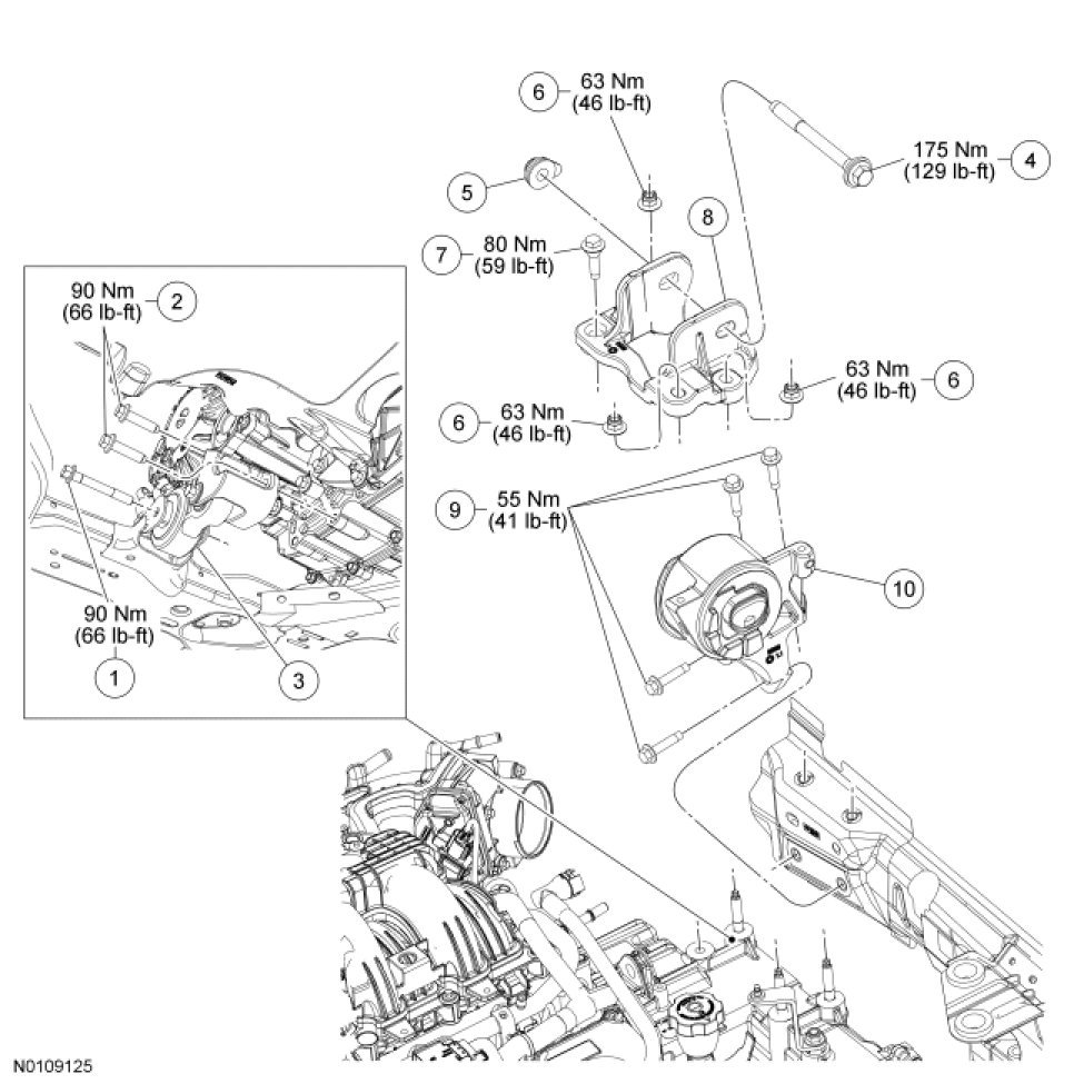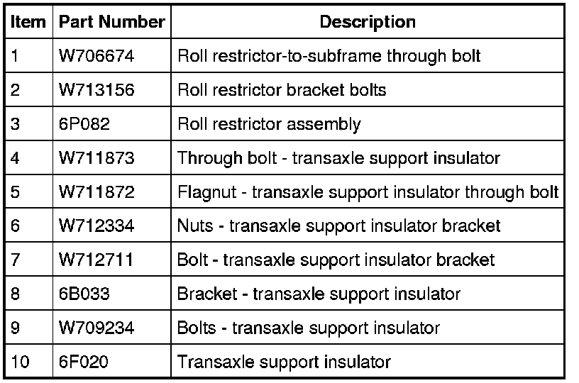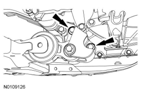 10. Tighten the engine roll restrictor-to-subframe through bolt.