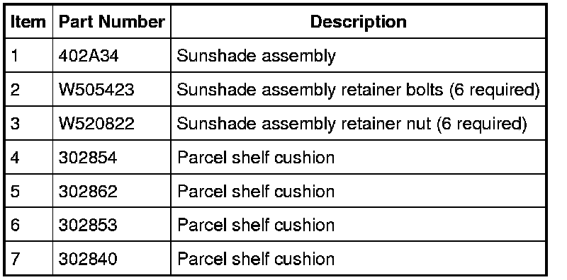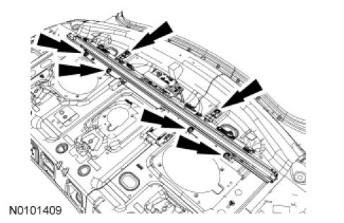 1. Remove the parcel shelf. For additional information, refer to Parcel Shelf Service and Repair.