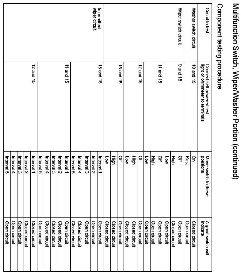 Windshield Washer Switch: Testing and Inspection