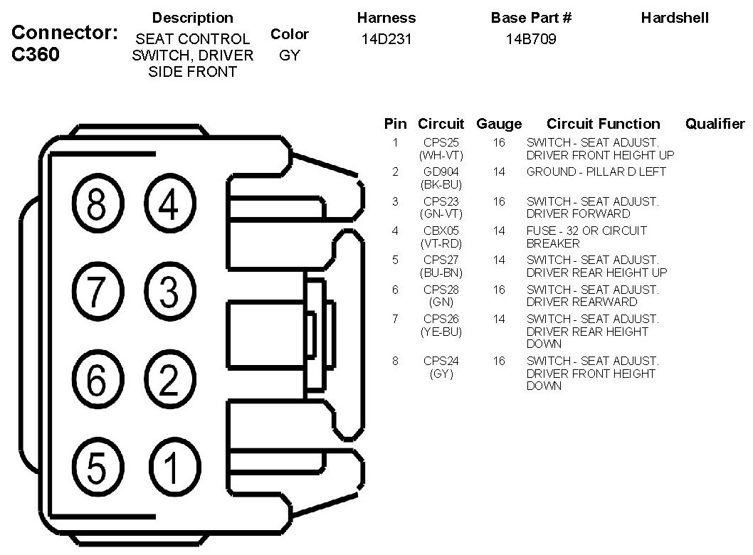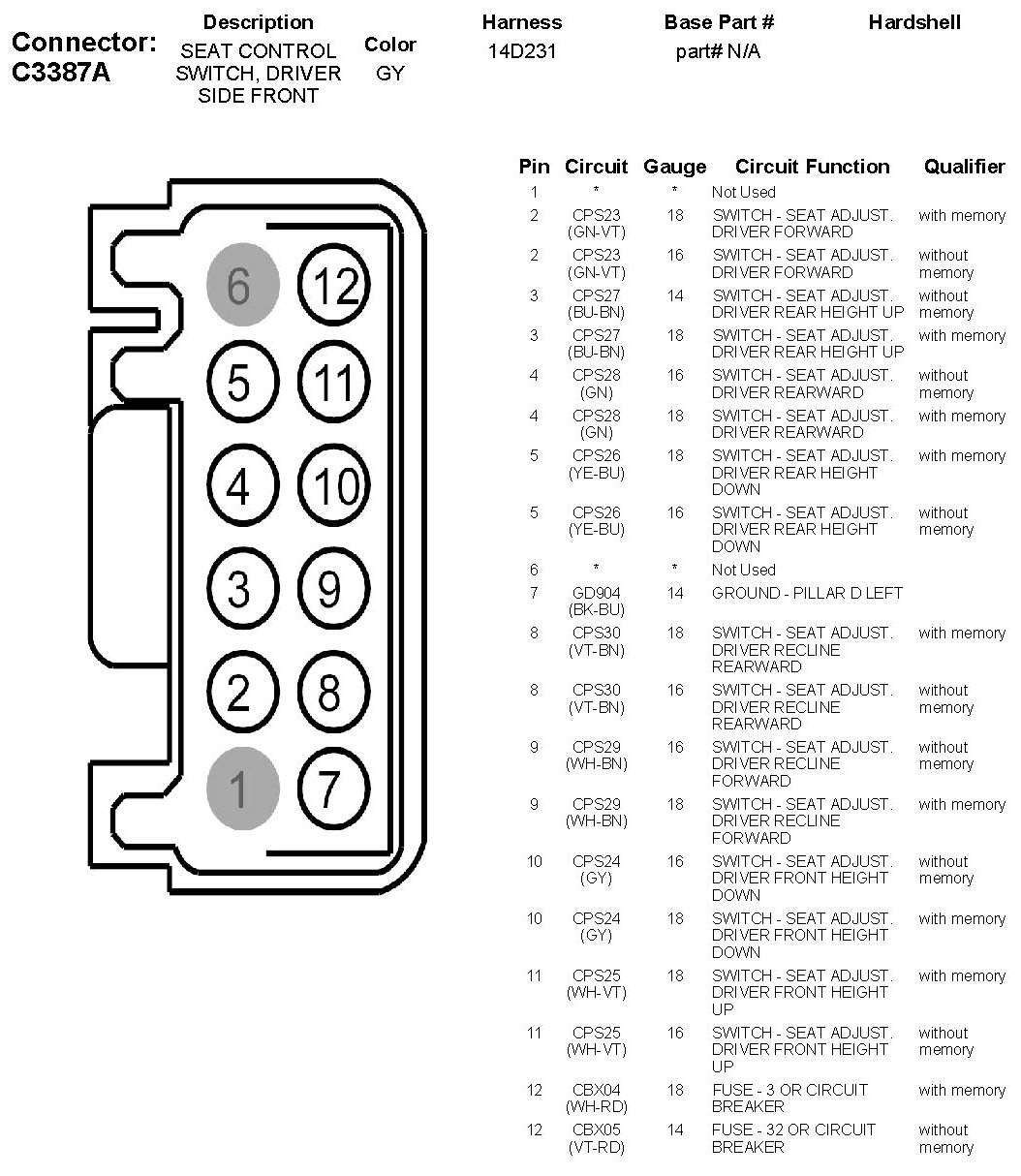 Seat Control Switch, Driver Side Front
