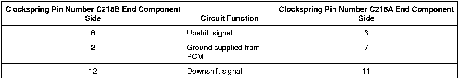 - Measure the resistance of the paddle shifter circuits through the clockspring, using the following chart: