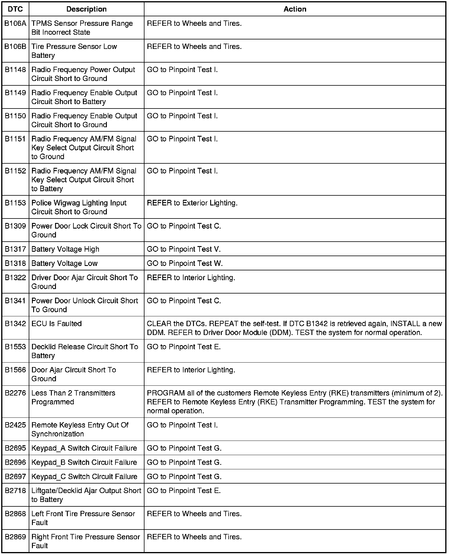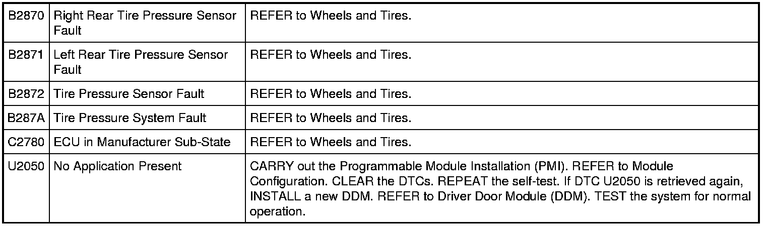 Driver Door Module (DDM) DTC Chart