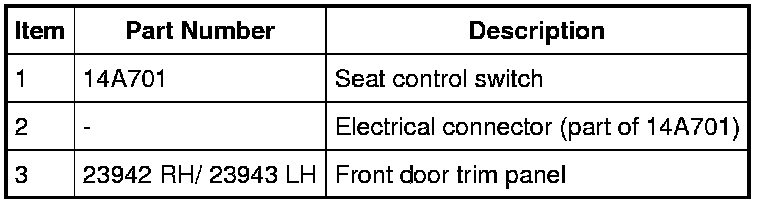 - Release the locking tabs in the door panel and remove the front seat control switch.