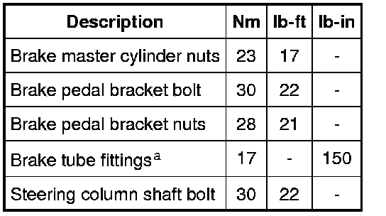 a All brake tube fittings must be tightened to the specific torque value and be free of fluid leakage.