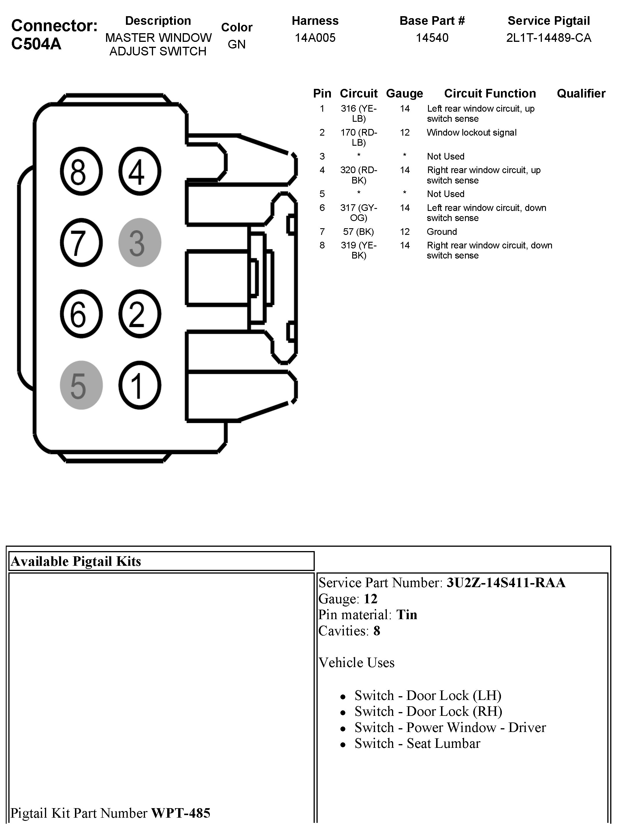 C504A Master Window Adjust Switch