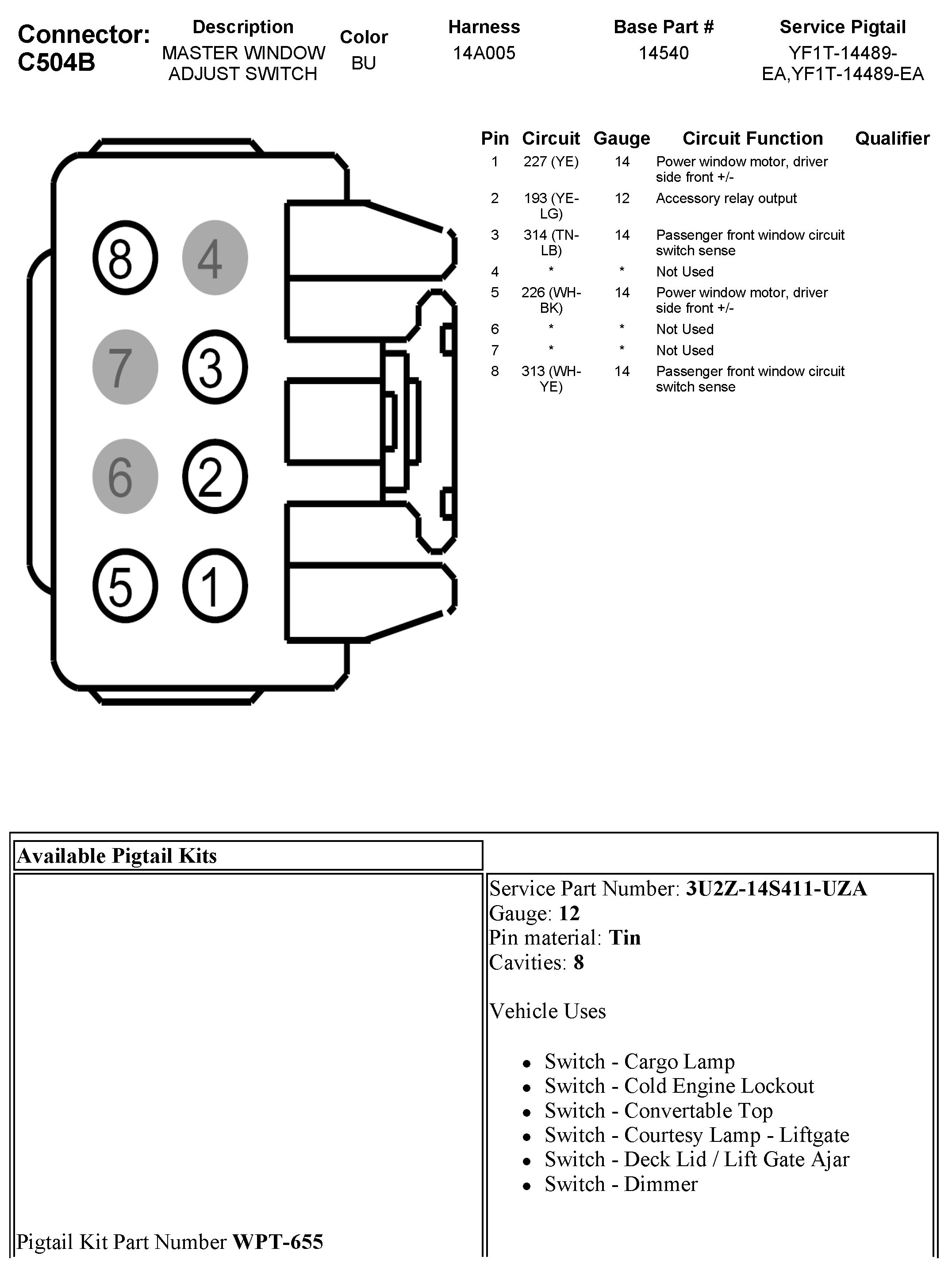 C504B Master Window Adjust Switch
