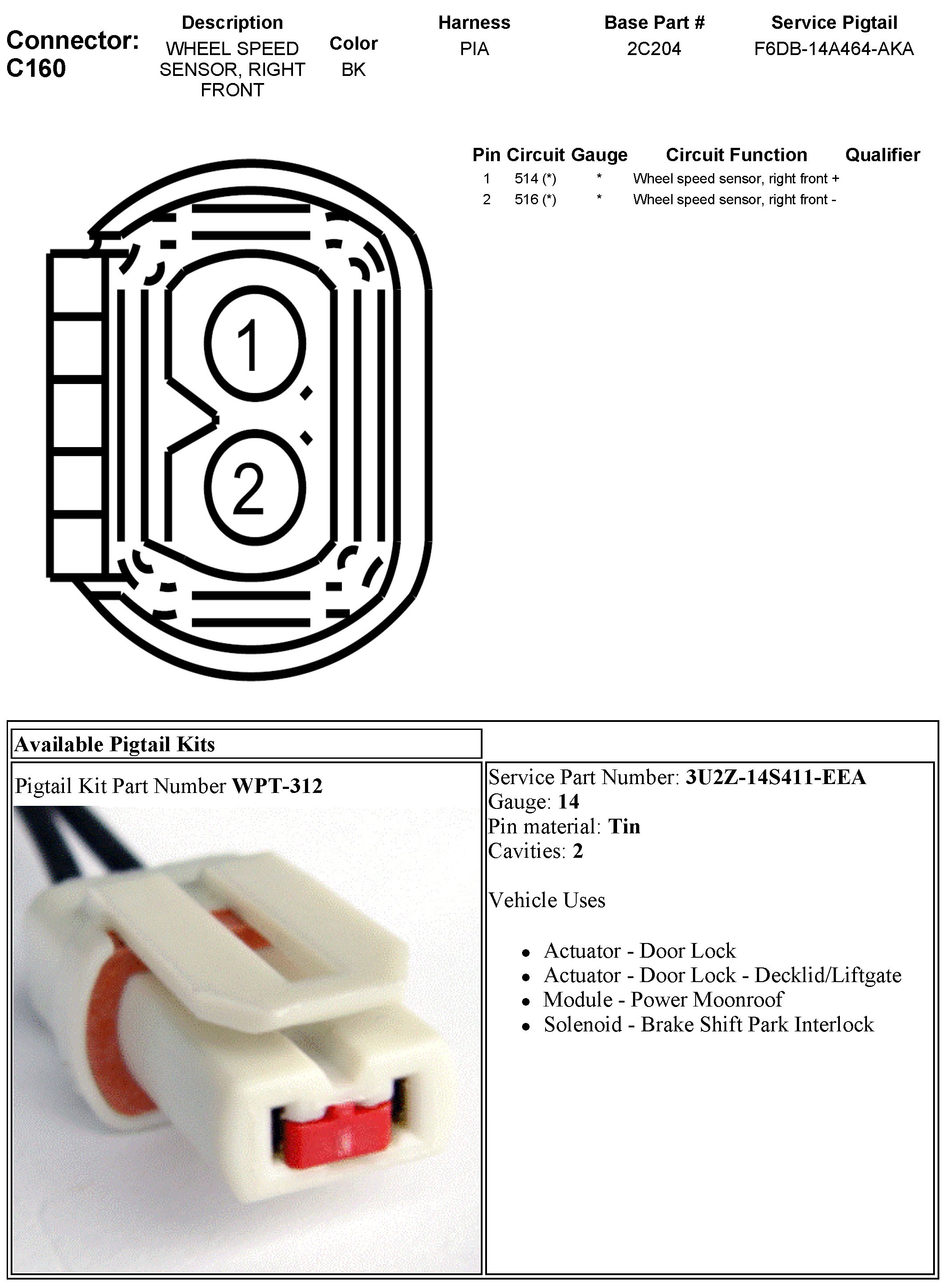 C160 Wheel Speed Sensor, Right Front