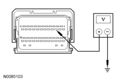 - Measure the voltage between ground and PCM C175B-14, circuit 73 (OG/LB), harness side.