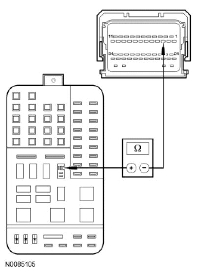 - Measure the resistance between ground and PCM C175B-14, circuit 73 (OG/LB), harness side.