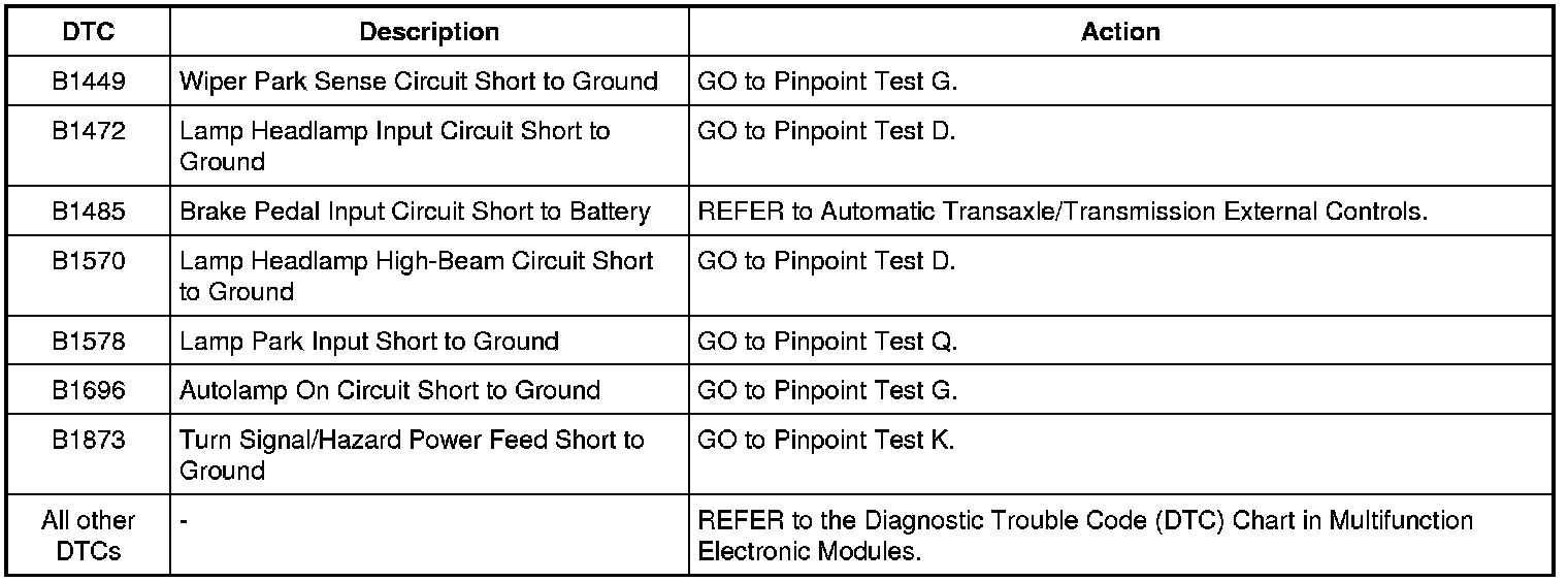 Lighting Control Module (LCM) DTC Chart