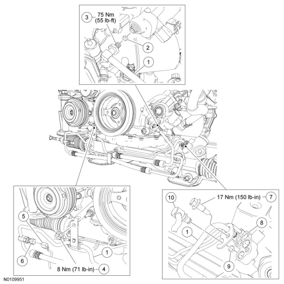 7. Fill the power steering system. For additional information, refer to Steering System Power Steering System Filling.