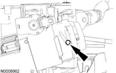 11. Remove and discard the ignition lock cylinder and drill shavings from the steering column.