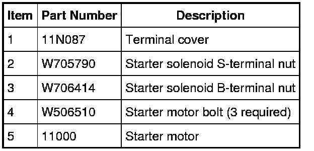 WARNING: Always disconnect the battery ground cable at the battery before disconnecting the starter motor battery terminal lead. If a tool is shorted at the starter motor battery terminal, the tool can quickly heat enough to cause a skin burn. Failure to follow this instruction may result in serious personal injury.