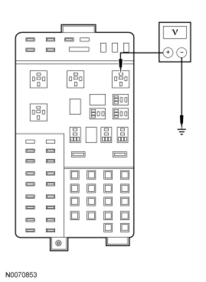 - Measure the voltage between rear window defrost relay pin 87, circuit 186 (BN/LB), harness side and ground.