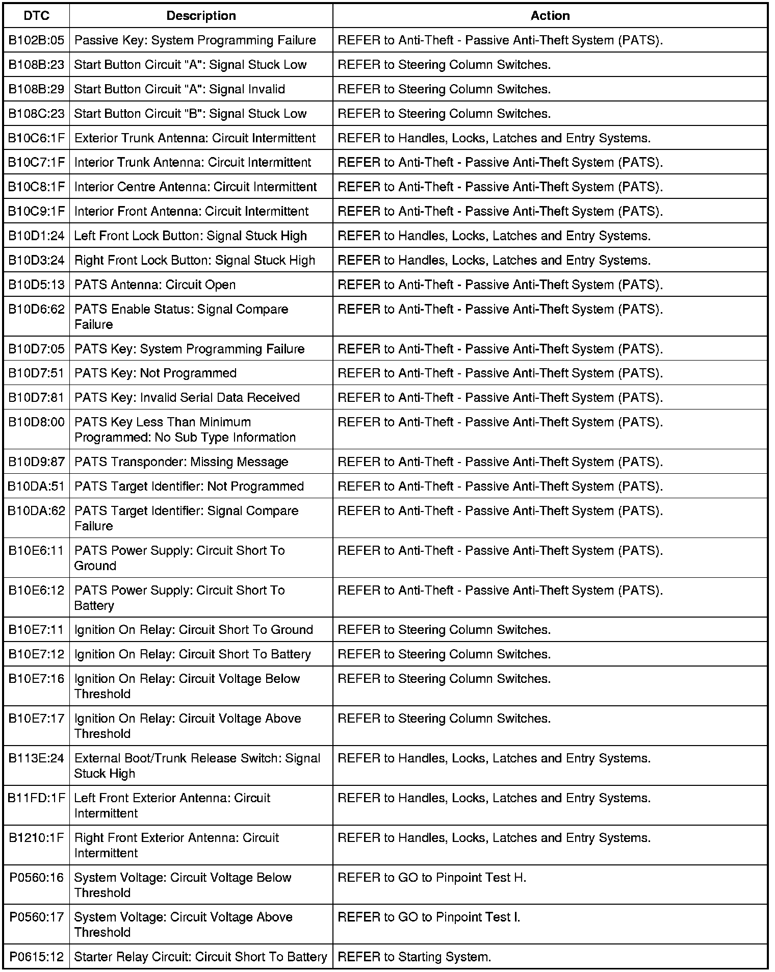 NOTE: Refer to Description and Operation, Intelligent Access (IA) with Push Button Start in Anti-Theft - Passive Anti-Theft System (PATS) Anti-Theft - Passive Anti-Theft System (PATS) to review the procedures for achieving the various ignition states (ignition off, ignition on, ignition start) on vehicles with this feature.