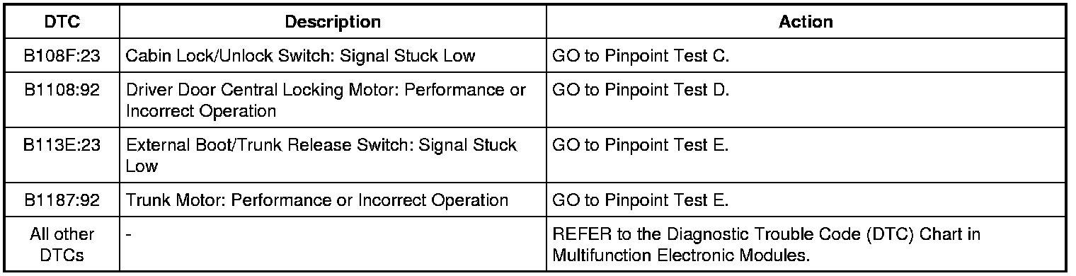 Body Control Module (BCM) DTC Chart