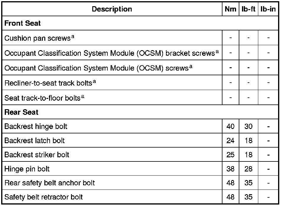 Seats: Specifications