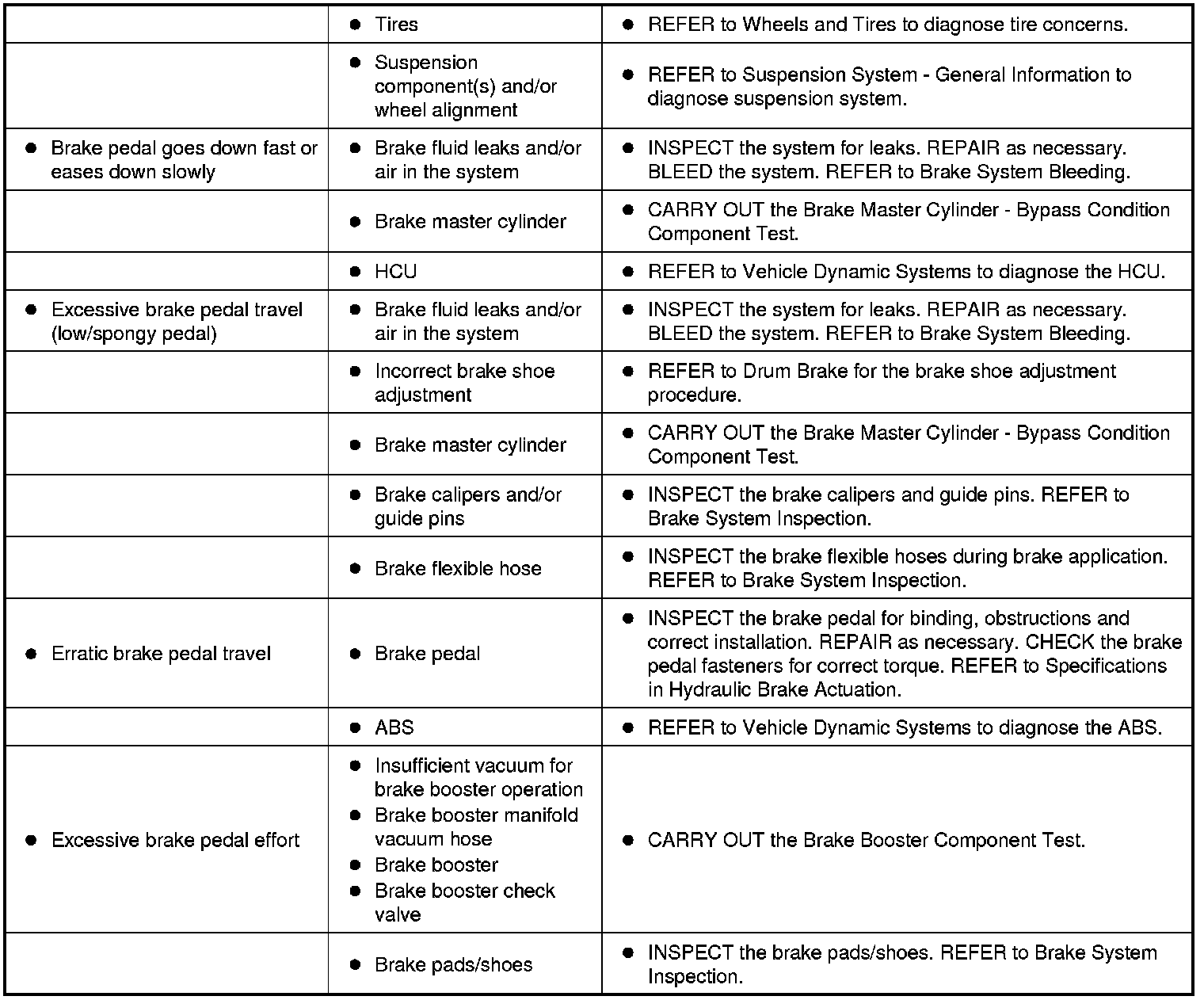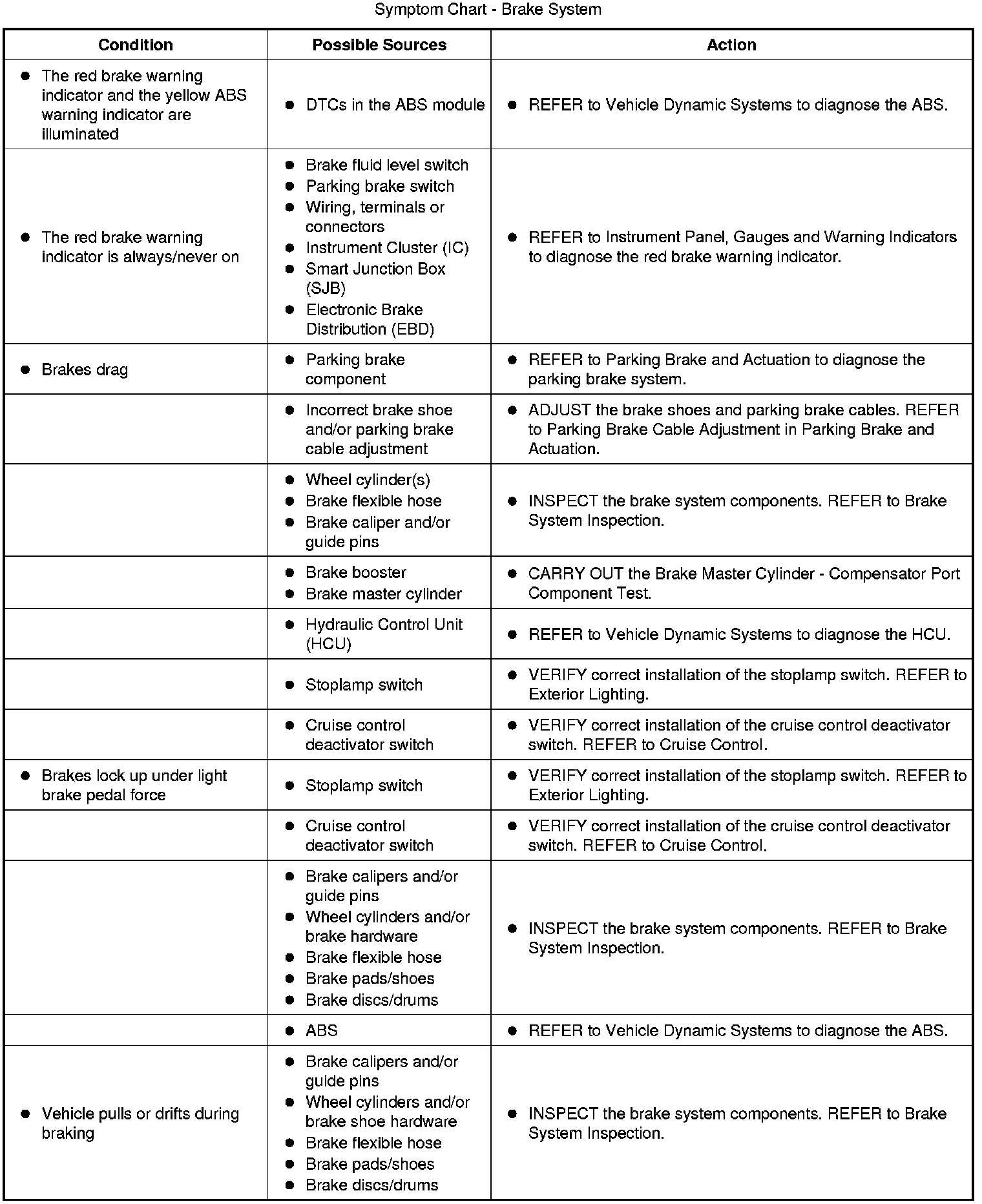 Symptom Chart - Brake System