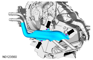 1. Remove the heater core and evaporator core housing. For additional information, refer to Heater Core And Evaporator Core Housing Heater Core And Evaporator Core Housing.