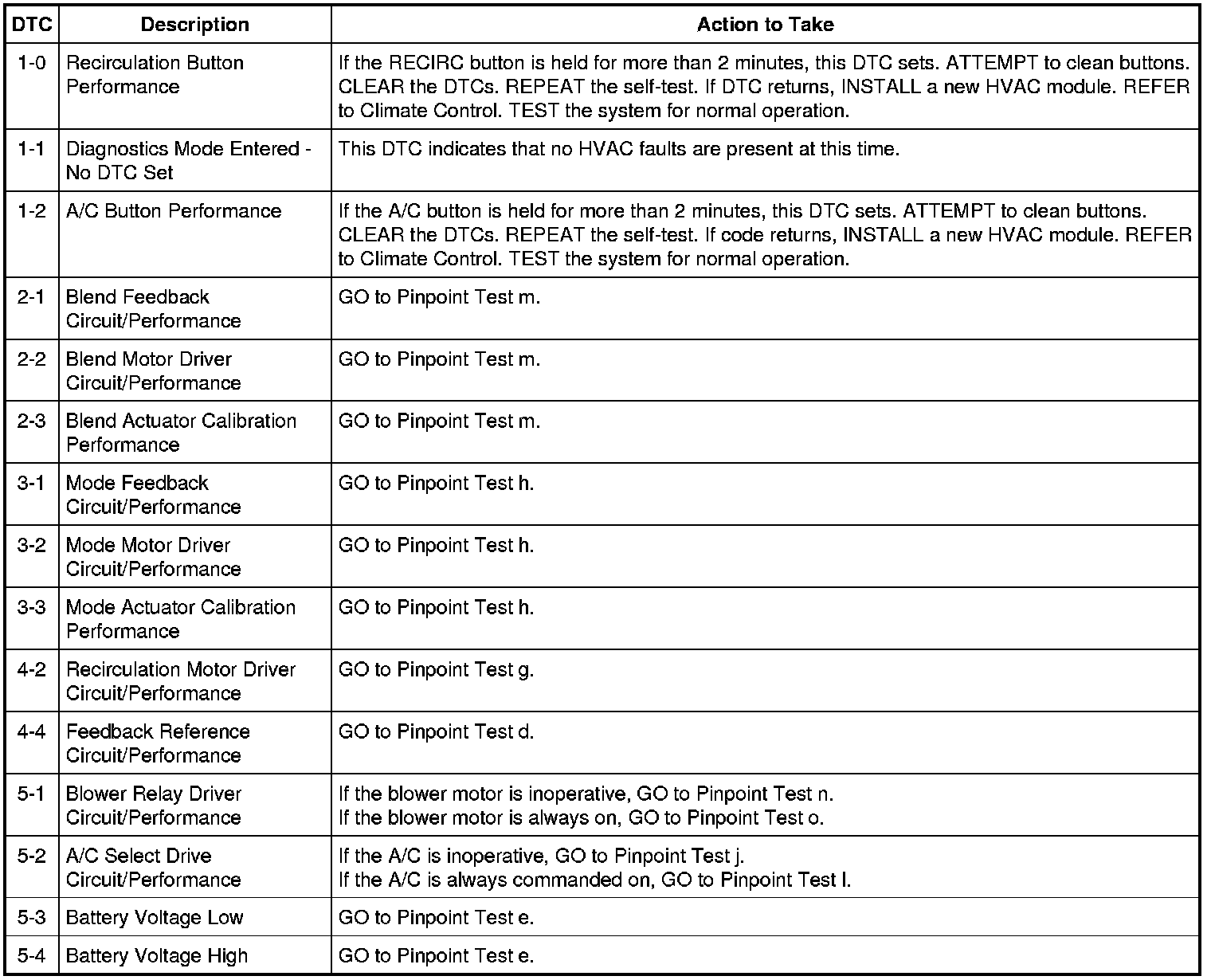 HVAC Module DTC Chart