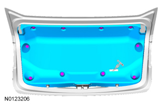 3. Remove the 10 pin-type retainers and the decklid trim panel.
