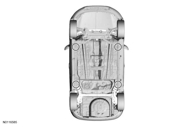 NOTICE: It is not recommended that the vehicle is jacked or lifted on the rear suspension crossmember. If the vehicle must be lifted on the crossmember, make sure that the jack or lift is positioned centrally. Failure to follow these instructions will result in deformation of the closing plate which will weaken the crossmember.