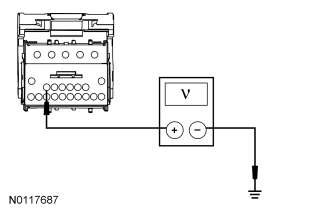 - Measure the voltage between the RFA module, circuit SBP09 (RD), harness side and ground; and C3503A-2, circuit SBP14 (BN/RD), harness side and ground.