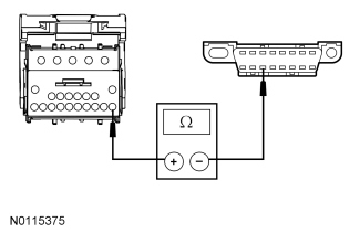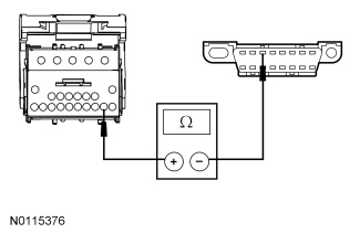 - Measure the resistance between the RFA module, circuit VDB06 (GY/OG), harness side and the DLC C251-3, circuit VDB06 (GY/OG), harness side.